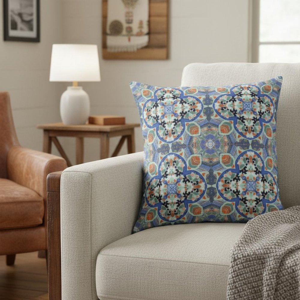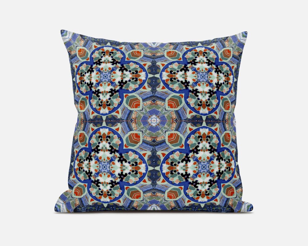 Bold in every right of its own with an eclectic blend of colors, this Blue Orange Cloverleaf Boho Suede Throw Pillow is a staple for the contemporary flower-child aesthetic. The cloverleaf patterns in the relaxing blues and greens against the lively orange tones create the perfect harmony of neutrals and organics. Draped in high-quality soft suede fabric for enhanced durability and a smooth finish with a lustrous sheen, making the pillow an unabashed visual piece while providing functionality. This blown pillow comes with a durable polyfill insert for a soft and cozy feel while providing maximum comfort when you lean on it. Standing out in fashion and function, this decorative throw pillow will add colors and comfort to your modern or bohemian home. 16” x 16” x 5”