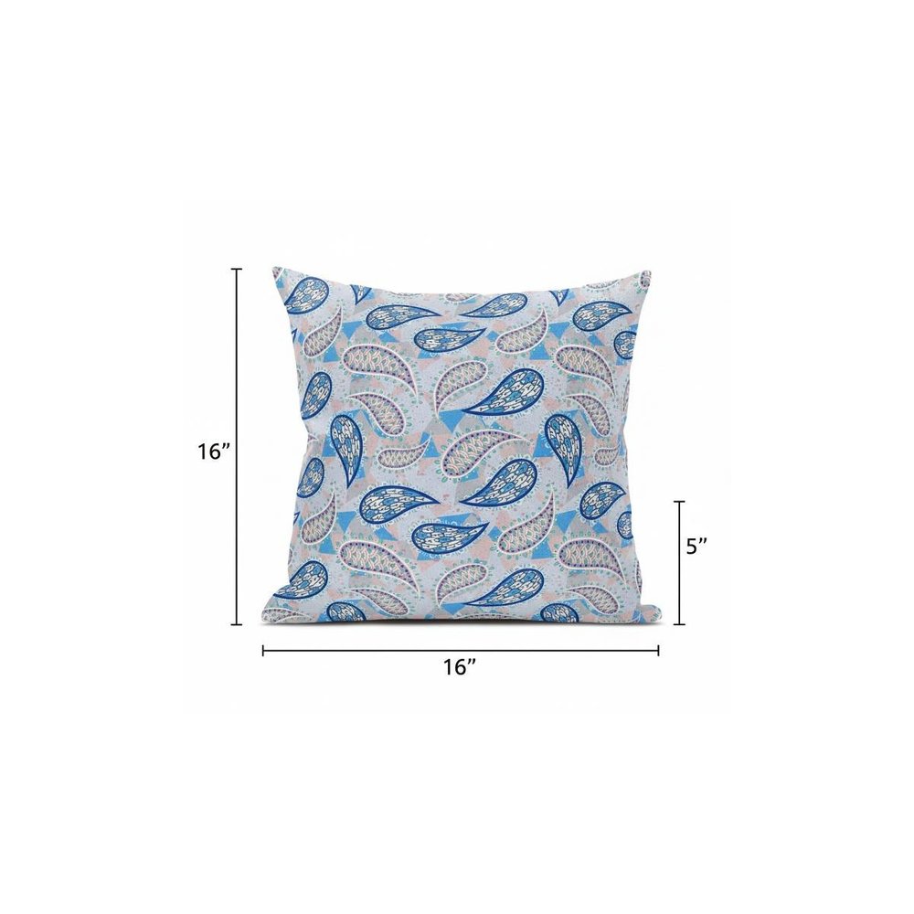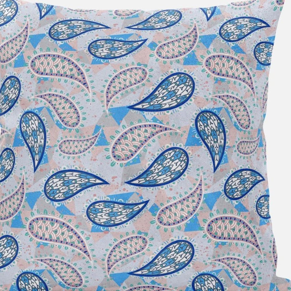 16” Blue Peach Boho Paisley Suede Throw Pillow
