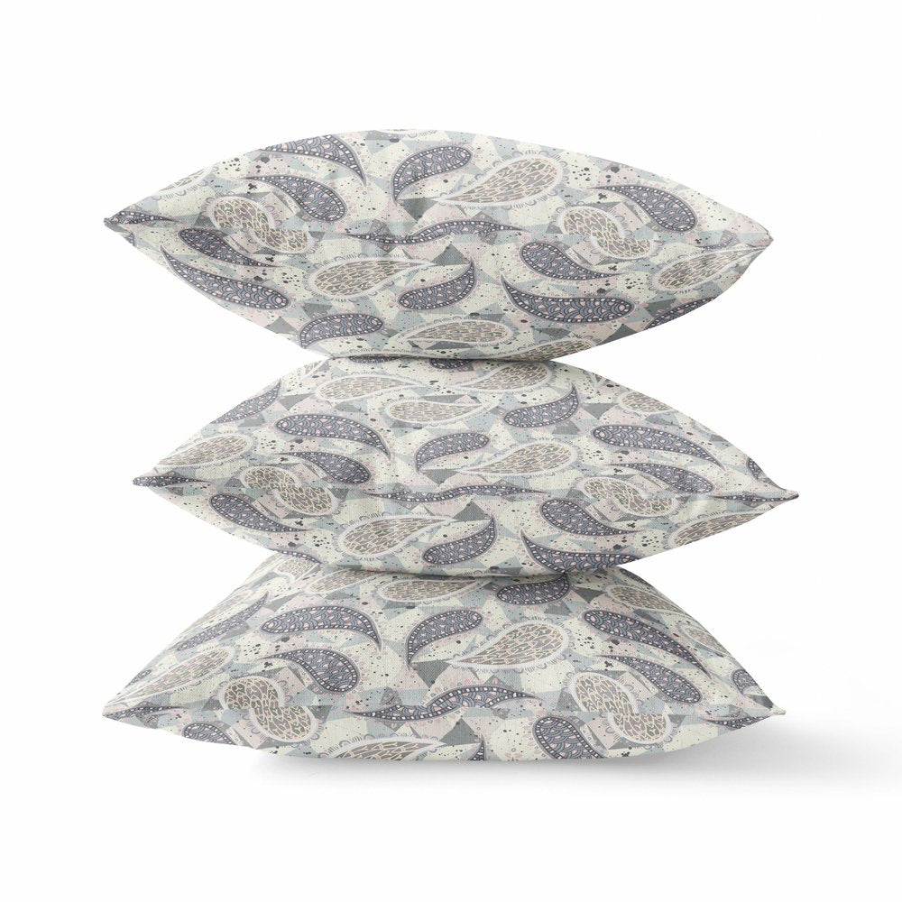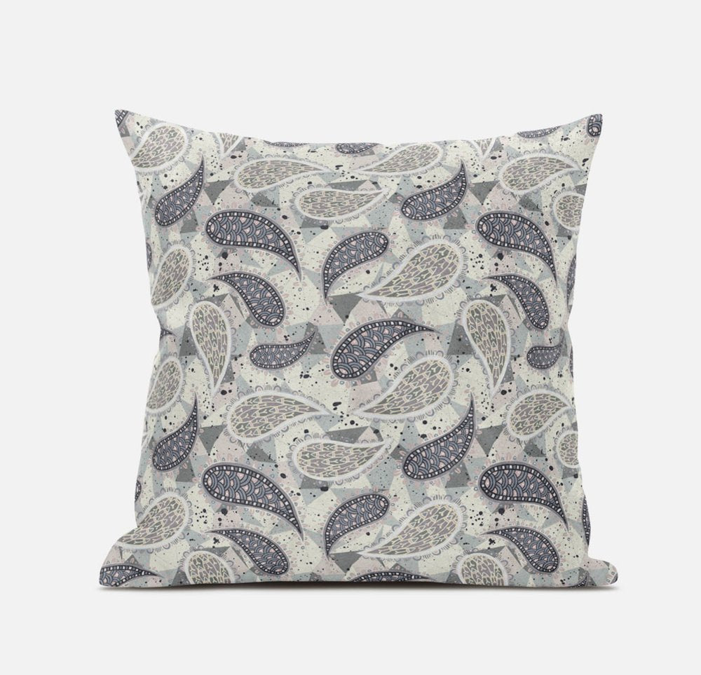 16” Gray Cream Boho Paisley Suede Throw Pillow