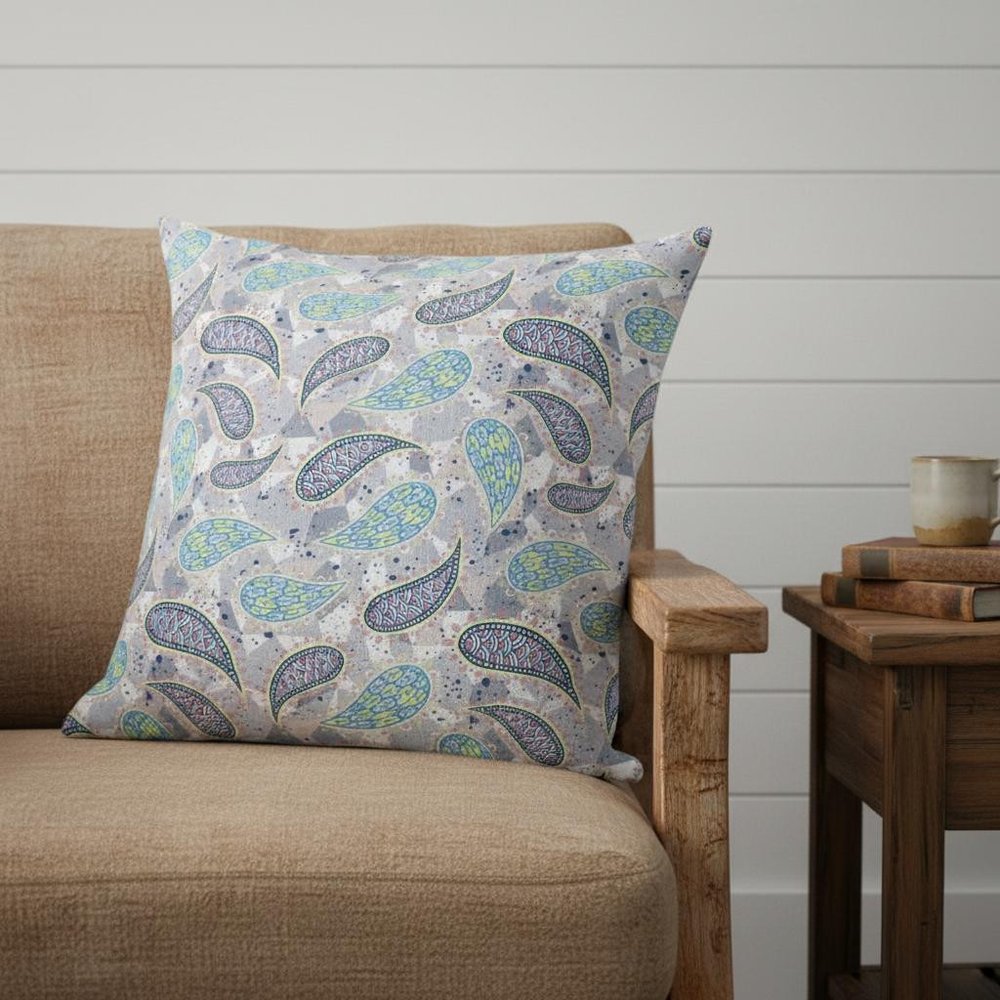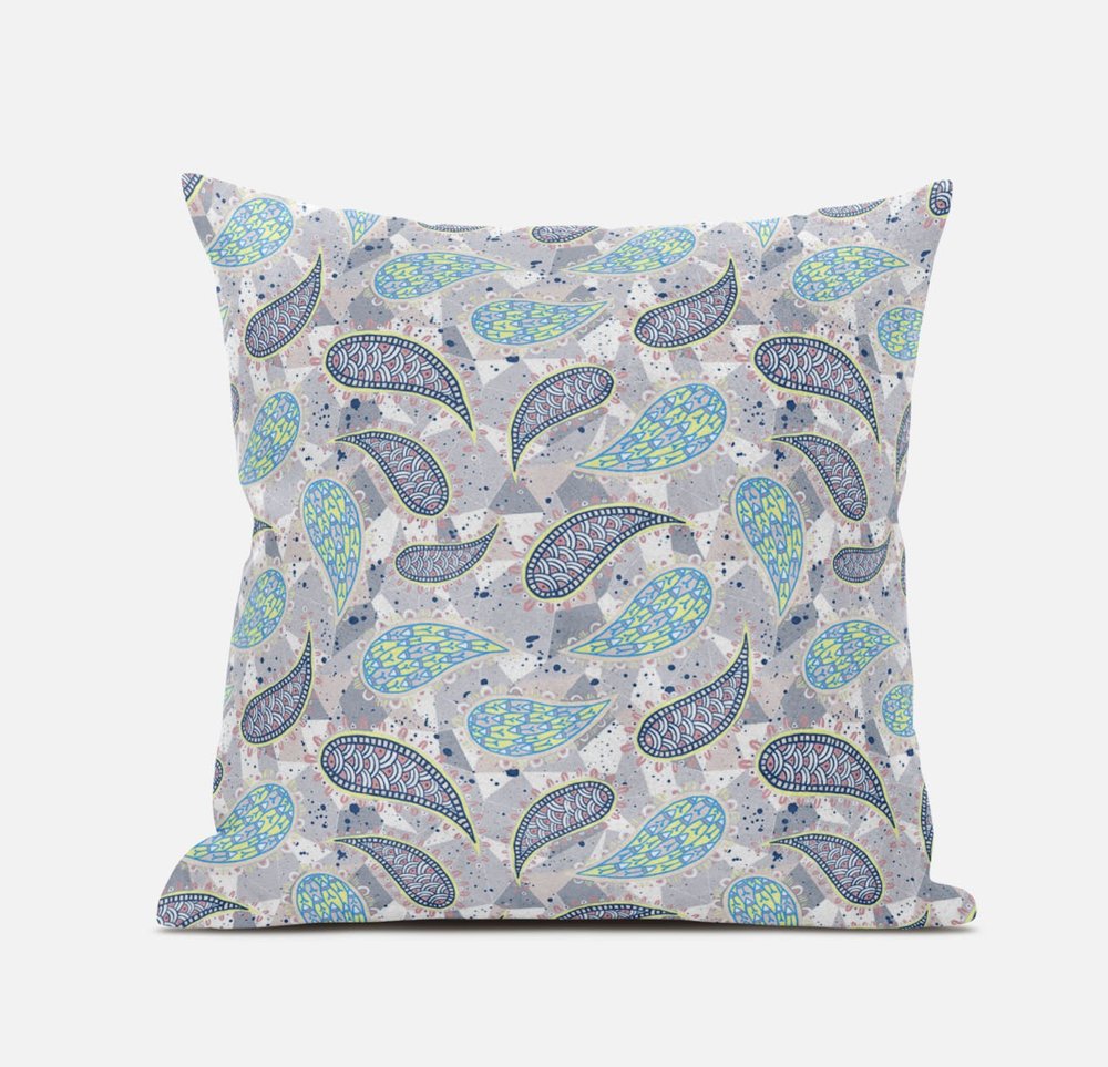 16” Gray Green Boho Paisley Suede Throw Pillow