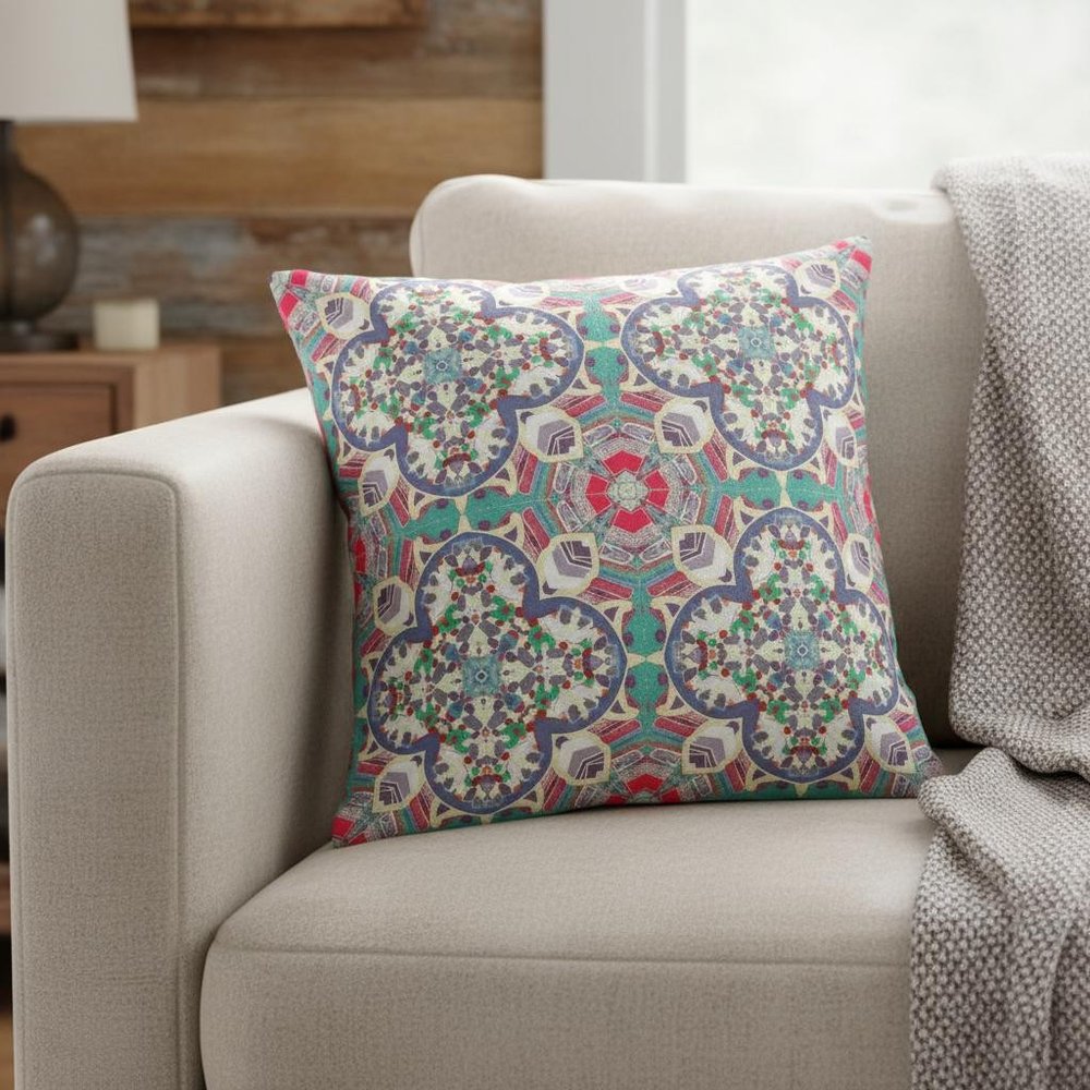 Invigorate your abode with the bright hues of this eye-catching Gray Pink Cloverleaf Boho Suede Throw Pillow and watch your space become the bohemian nest you always dreamed of. The bright pink tones create a perfect harmony with the cool-toned gray, blue, and jade cool-on the rosette-like motif, making this throw pillow the essence of coastal bohemian flair. This blown pillow is crafted from premium-quality suede fabric which is characterized by its soft and smooth surface texture for a delicate feel. With a polyester filling insert as soft as the clouds, the blown and closed pillow is perfectly suited for you to rest your head on. Fashioned with luxurious yet durable suede material, the cushion gives a premium feel with a lustrous sheen. Turn your home into the epitome of boho bravura with the pastel hues of this beautiful throw pillow. 16” x 16” x 5”