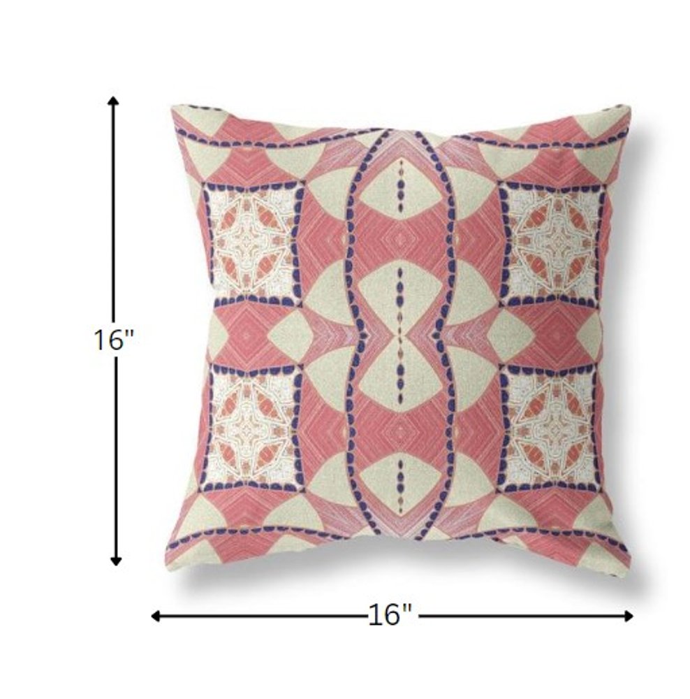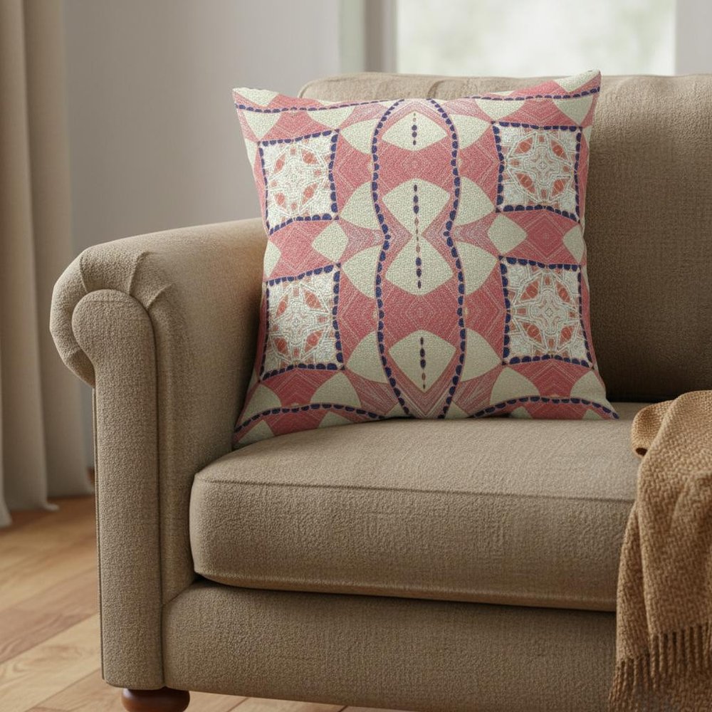 Capturing the aesthetics of bohemian style with a modern poise, this Red White Cosmic Circle Boho Suede Throw Pillow will grace your living space with its visual allure. The subtlety of the palette features blush red, tea green, and white geometric structures enhanced by indigo dotted lines in a cosmic fashion to accentuate a boho-chic vibe to the piece. The blown pillow is carefully crafted with a premium suede fabric that gives it a feel of luxury while also being functional for everyday use. The plush look and fluffy nature come from the regular polyfill insert that provides a comfortable platform for your head and neck to maximize relaxation. The soft and sweet tones of this decorative throw pillow will beautifully blend in with a variety of interior themes and decors. 16” x 16” x 5”