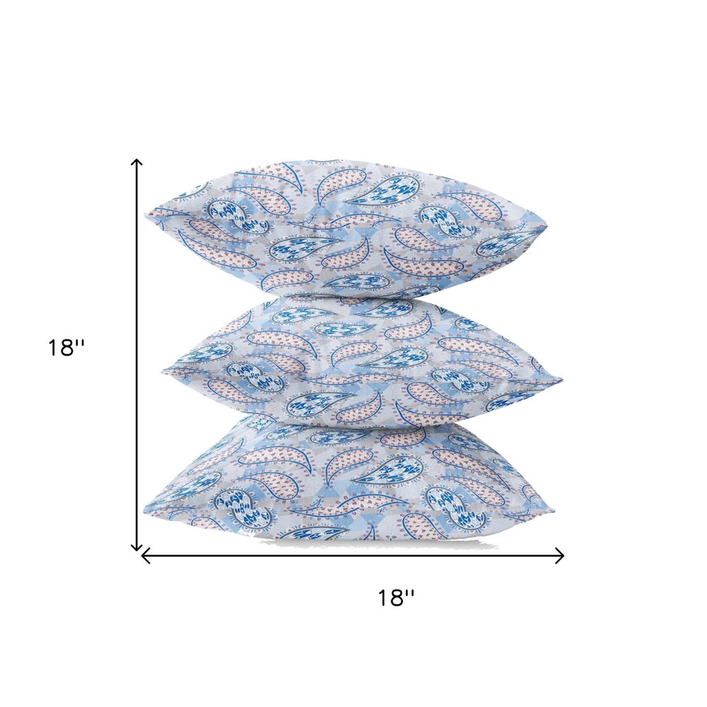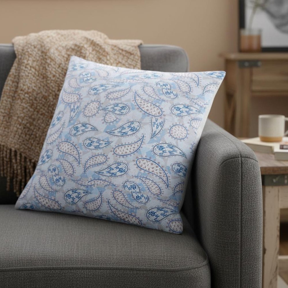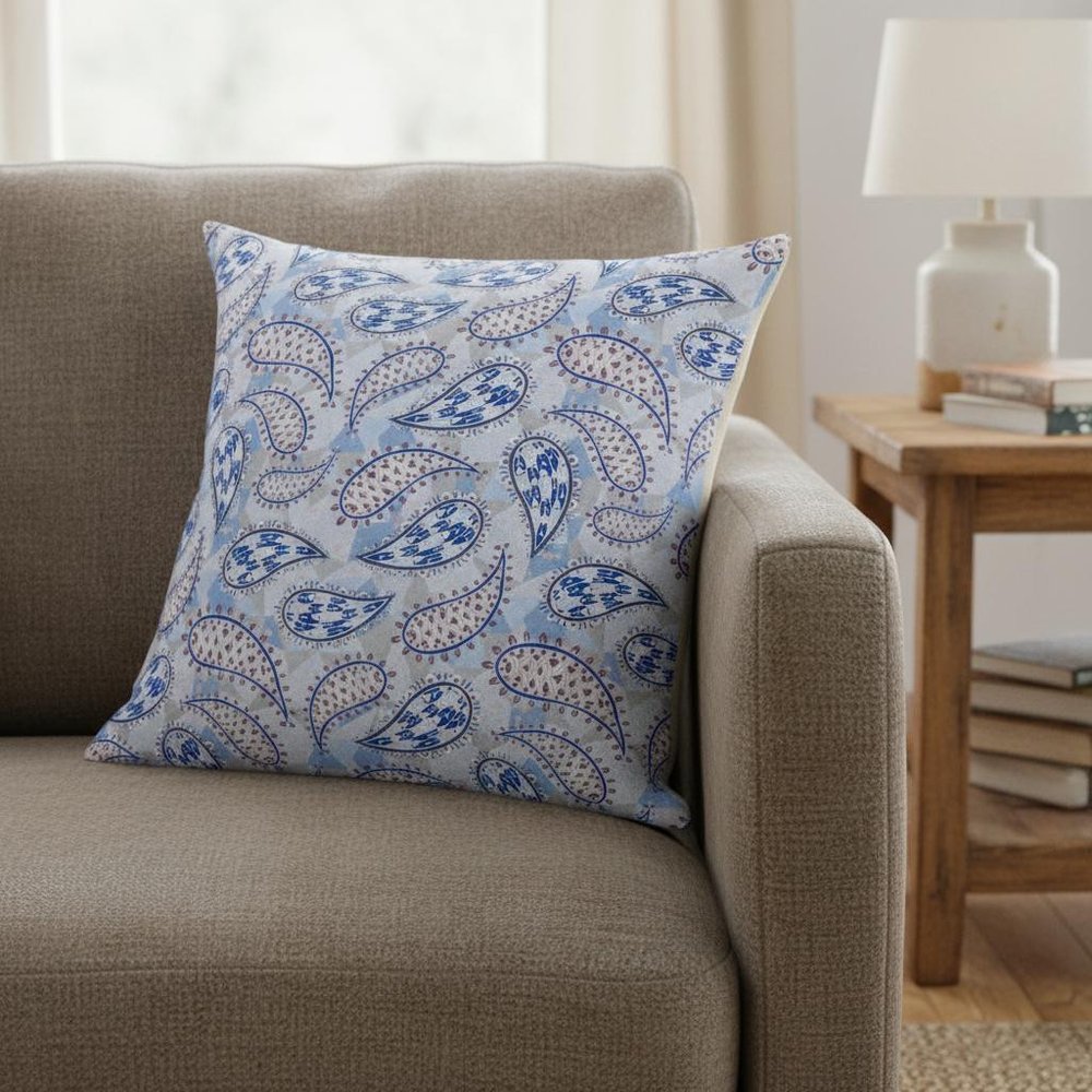 18” Blue Gray Boho Paisley Suede Throw Pillow
