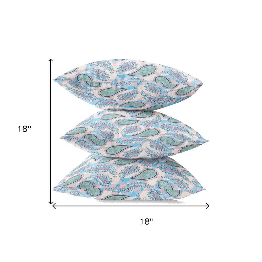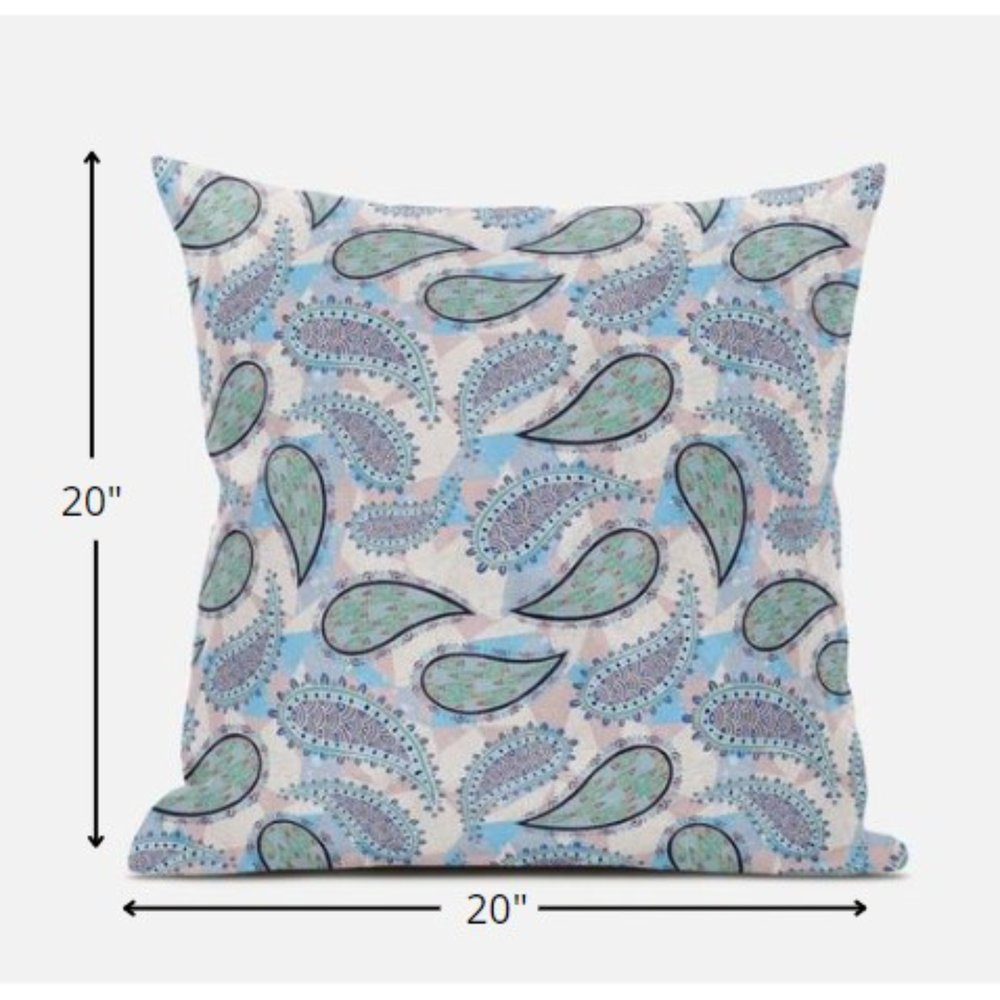 18” Blue Green Boho Paisley Suede Throw Pillow