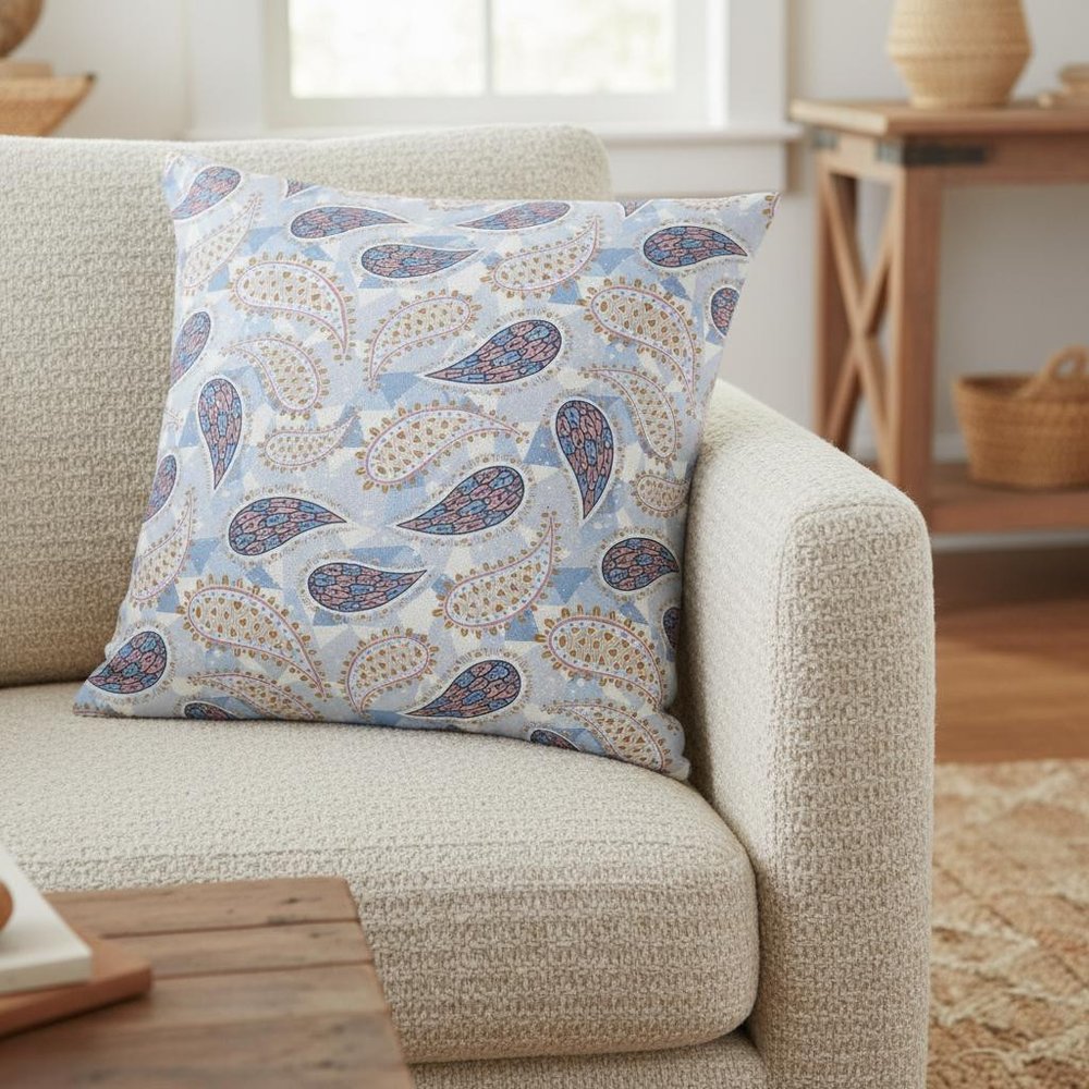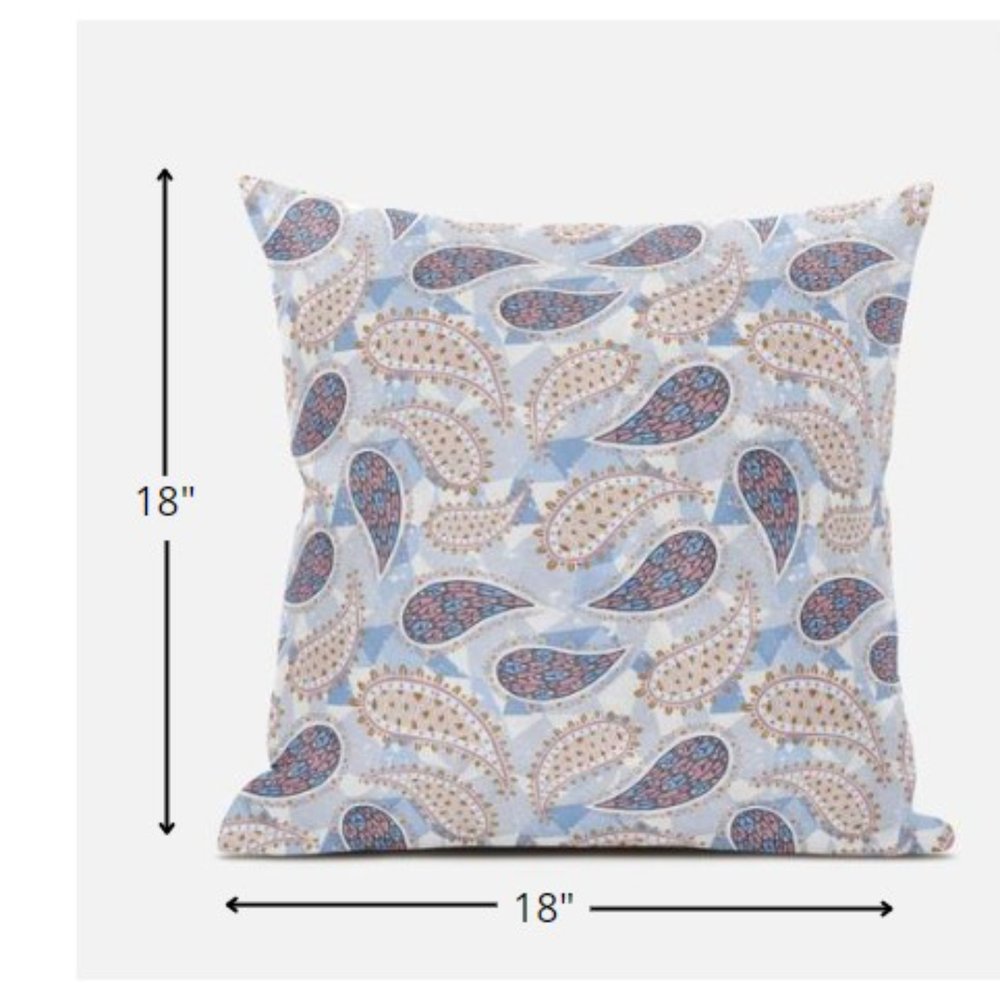 18” Blue Pink Boho Paisley Suede Throw Pillow