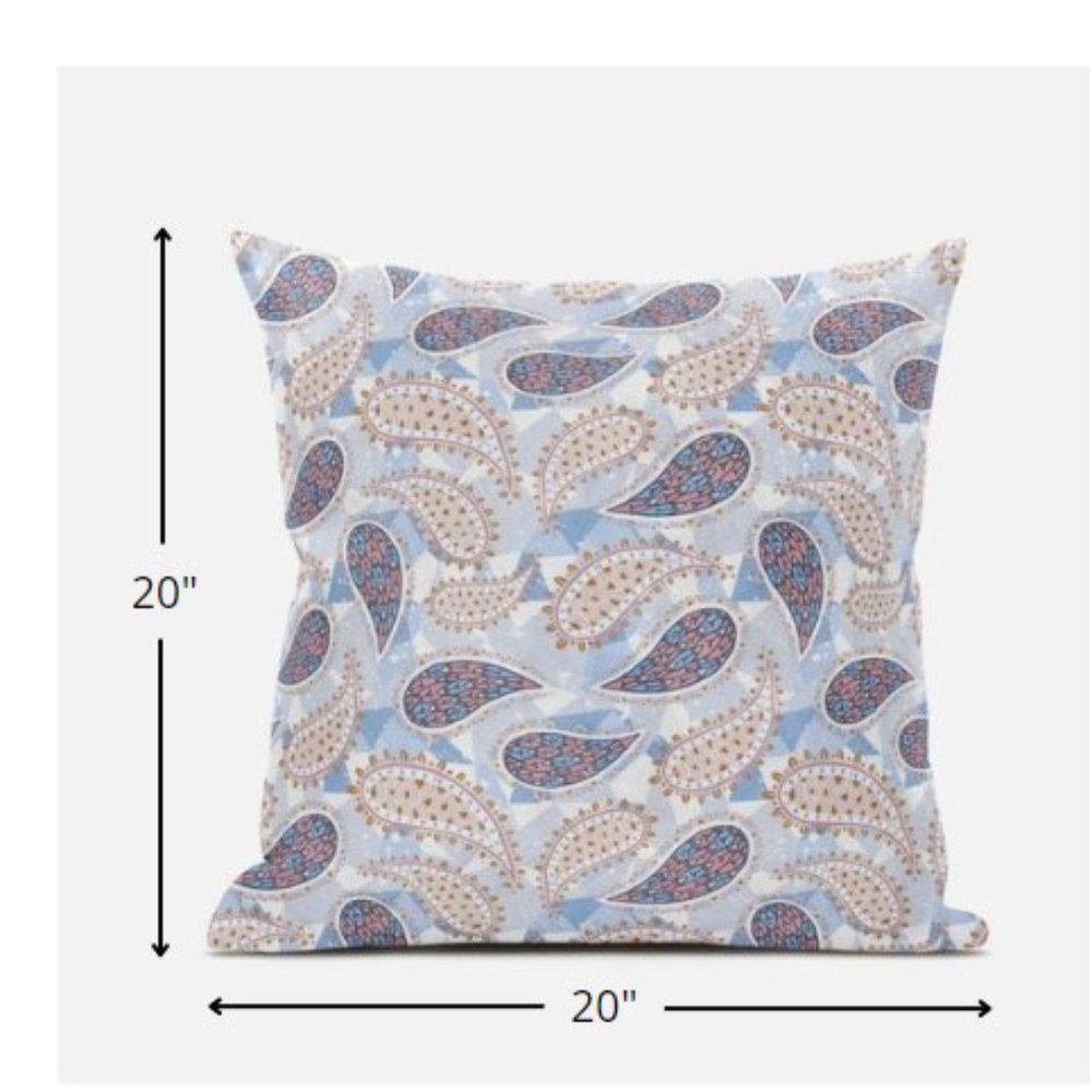 Combining botanical patterns with cool-toned hues, this eclectic Blue Pink Boho Paisley Suede Throw Pillow is sure to add a bohemian panache to your contemporary abode. The alluring paisley patterns create a harmonious medley of peachy pink tones over the soft blue geometric base for an eye-soothing appeal. The blown pillow is carefully crafted with a premium suede fabric that gives it a feel of luxury while also being functional for everyday use. The plush look and fluffy nature come from the regular polyfill insert that provides a comfortable platform for your head and neck to maximize relaxation. Complement the modern aesthetics of your home with this quintessential boho throw pillow to induce an ambiance tailored to elegance. 18” x 18” x 5”