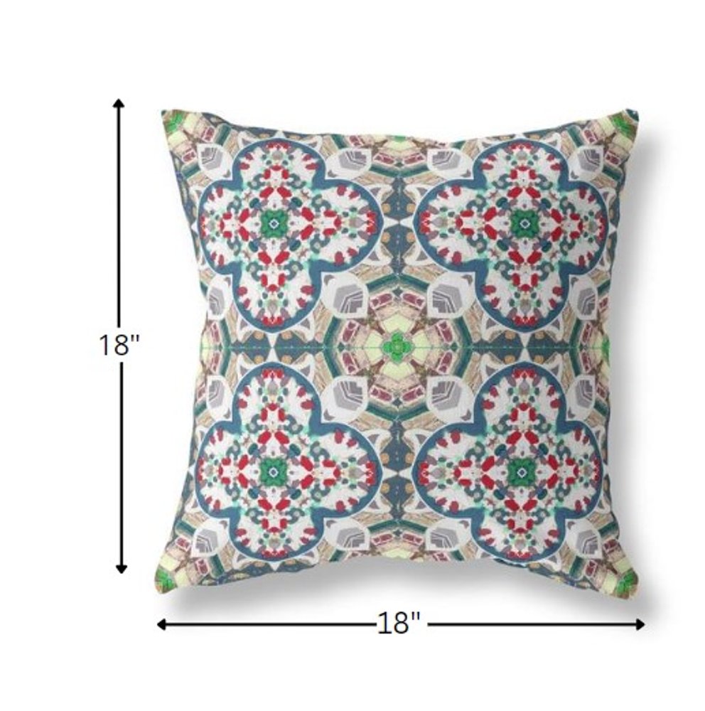 Delve into the concord of eye-catching hues in this Green White Cloverleaf Boho Suede Throw Pillow and bring life into your bohemian or contemporary living space. The geometric cloverleaf-like motifs of this bohemian style throw pillow in shades of green and white with the hints of red would harmonize flawlessly with any modern-day décor you have in your home. The elegant feel of the blown and closed pillow comes from the plush polyfill insert giving the piece a fluffy look. Crafted from a sturdy suede fabric, the pillow ensures durability with a soft and smooth texture, ideal for everyday use. Bohemian accents in a modern-contemporary style home are all the rage these days, and this exquisitely designed pillow offers the perfect marriage between the two styles to spruce up your home. 18” x 18” x 5”