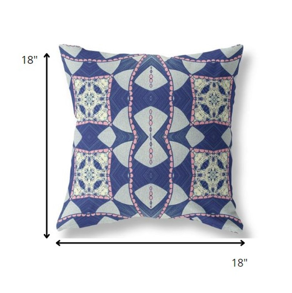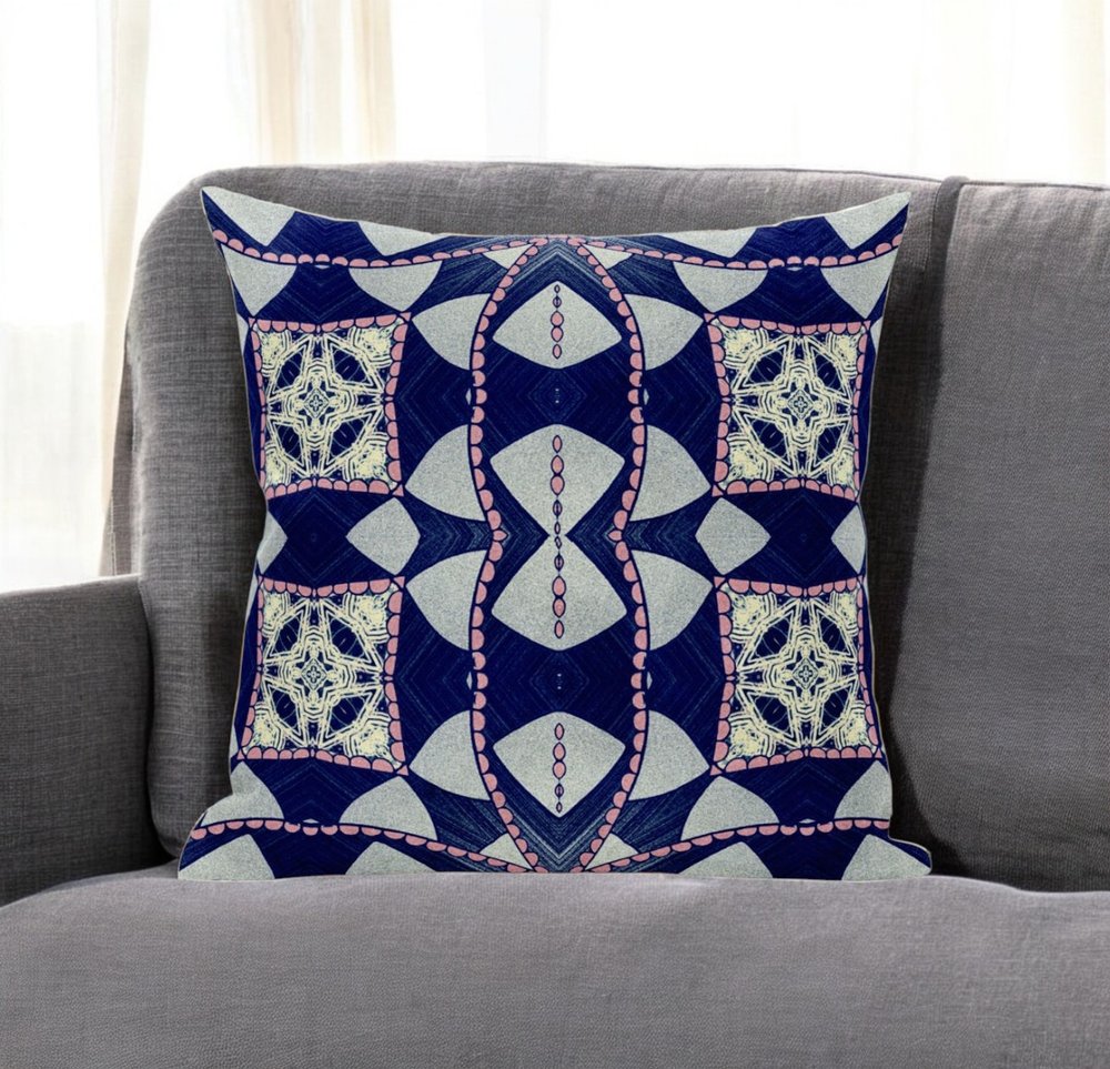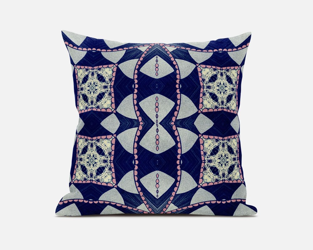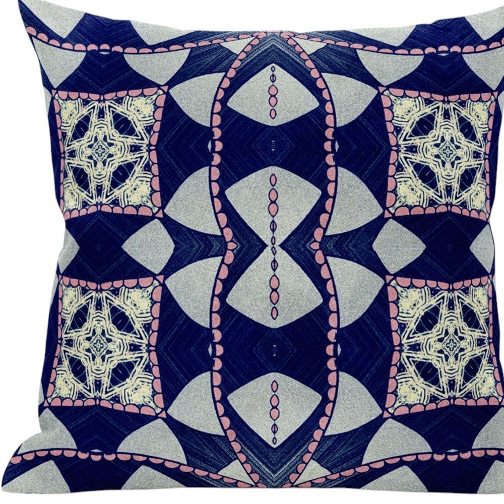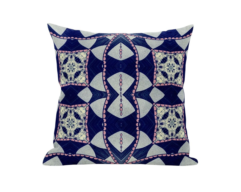 Give an enticing touch to your living room couch with this beautiful Indigo Pink Cosmic Circle Boho Suede Throw Pillow. The stunning indigo blue base is highlighted by the soft blue and yellow geometric shapes with hints of flamingo pink for visual contrast. Made from high-quality suede fabric for enhanced durability and softness with a soft and smooth surface texture that feels luxurious on the touch. This pillow is blown and closed with a durable polyfill insert which gives the piece a plush and fluffy look, making it ideal for resting or sleeping with utmost comfort. Elevate the aesthetics of your living space with this exquisitely designed throw pillow that will make your sofa a centerpiece in the room. 18” x 18” x 5”
