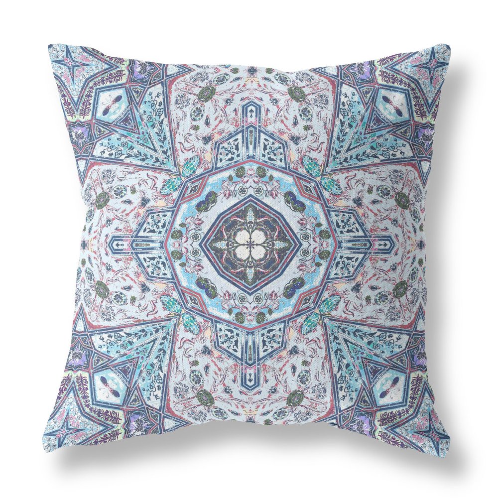 18" Light Blue Gray Floral Boho Suede Throw Pillow