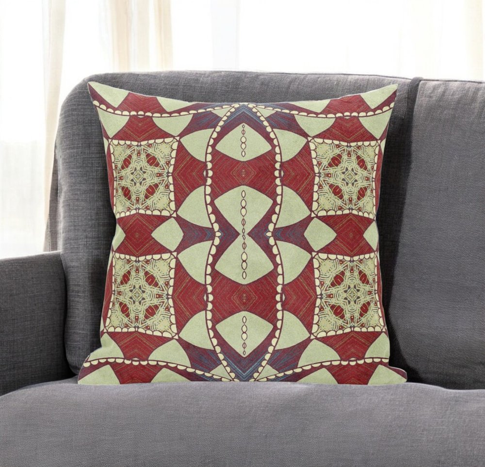 Brighten up your living room with this Muted Magenta Cosmic Circle Boho Suede Throw Pillow that is made to blend in with the aesthetics of any modern or bohemian décor. The greenish-yellow geometric patterns are beautifully flaunted over a muted magenta base that’s sure to allure the gaze. The smooth texture of the appealing suede fabric is sure to add a luxurious touch to the piece while making the pillow highly durable with a soft hand. This pillow is blown and closed with a sturdy yet soft polyfill insert for a plush and fluffy look while maximizing comfort every time you lean on it. Make your space feel warm and happy with this decorative throw pillow as the add-on. 18” x 18” x 5”