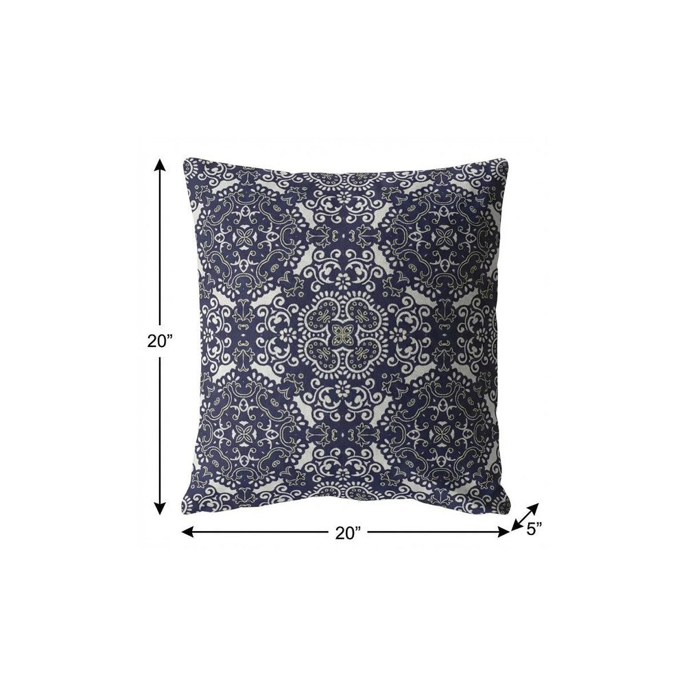20" Navy Boho Pattern Decorative Suede Throw Pillow
