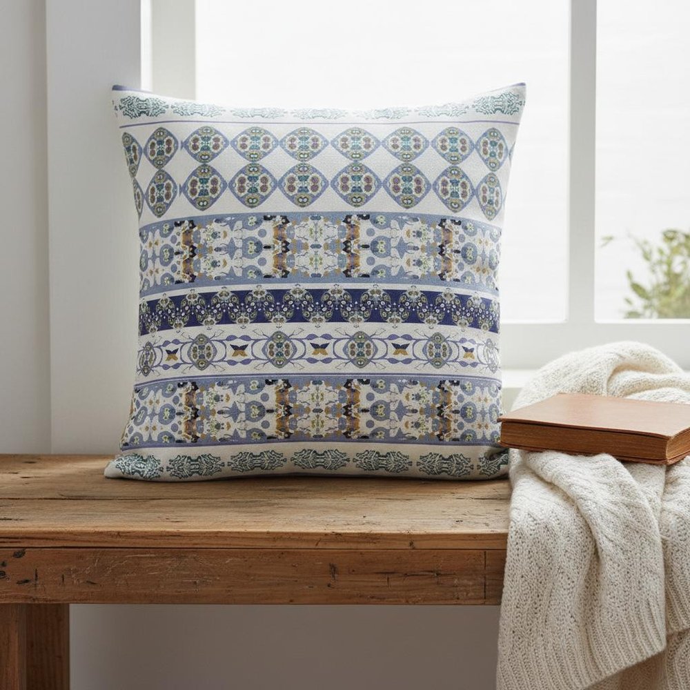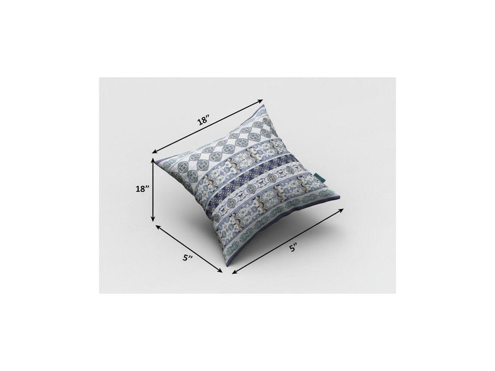 Capturing the core of the Bohemian styling, this Navy White Strips Boho Suede Throw Pillow features geometric patterns in a soothing color palette that will heighten a sense of purity in your living room. The intricate linework and decorative detailing in navy, gray, and gold is beautifully flaunted over a white backdrop for a subtle contrast. The premium quality suede fabric gives this pillow a lavish appearance with a silky smooth finish while ensuring durability for long-term everyday use. This blown and closed throw pillow features a soft polyfill insert which makes this eco-friendly pillow luxuriously fluffy and super comfortable to support your posture when you lean on it. Indulge in a calm aura with this spectacular throw pillow that stands out in style and comfort. 18” x 18” x 5”