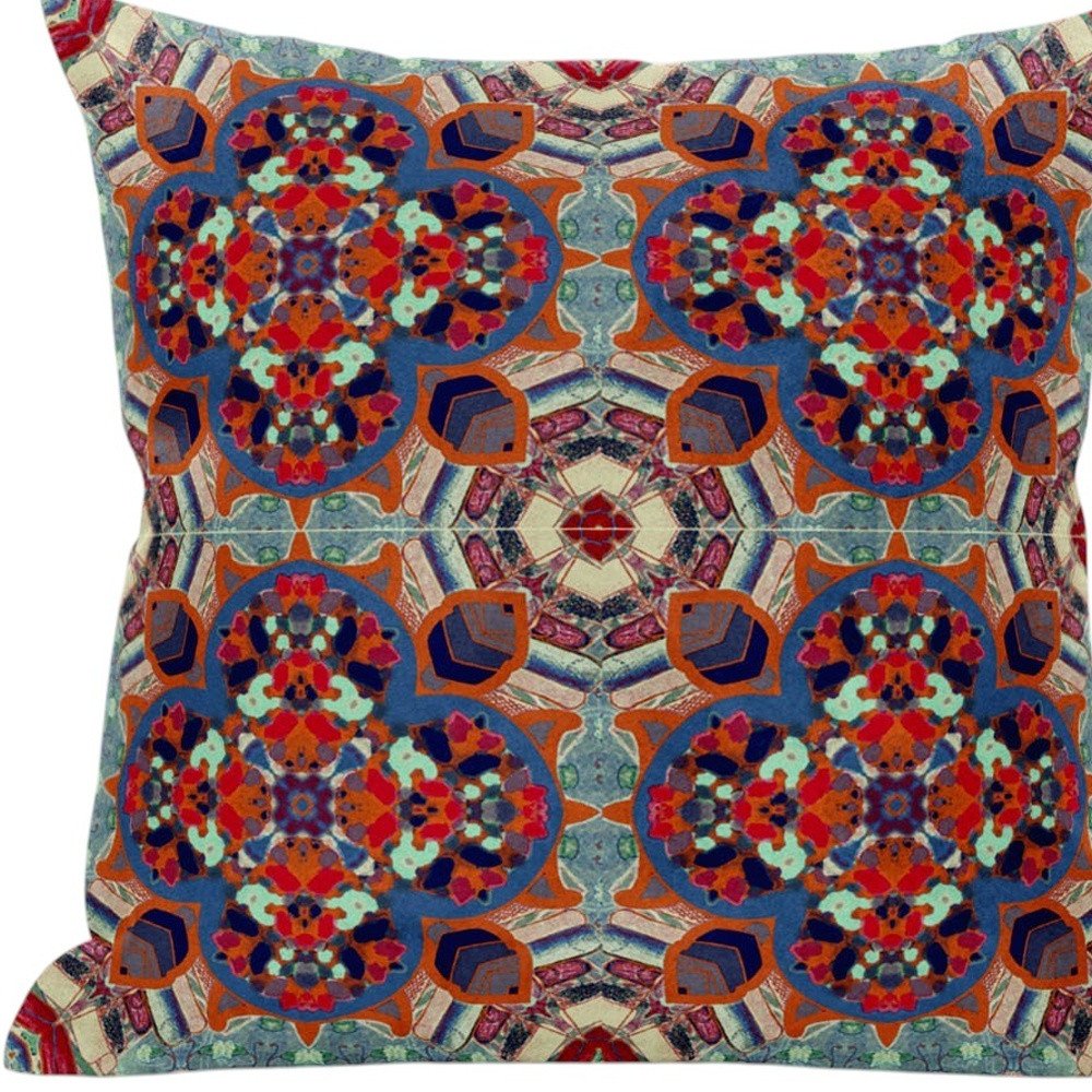 18" Orange Blue Cloverleaf Boho Suede Throw Pillow