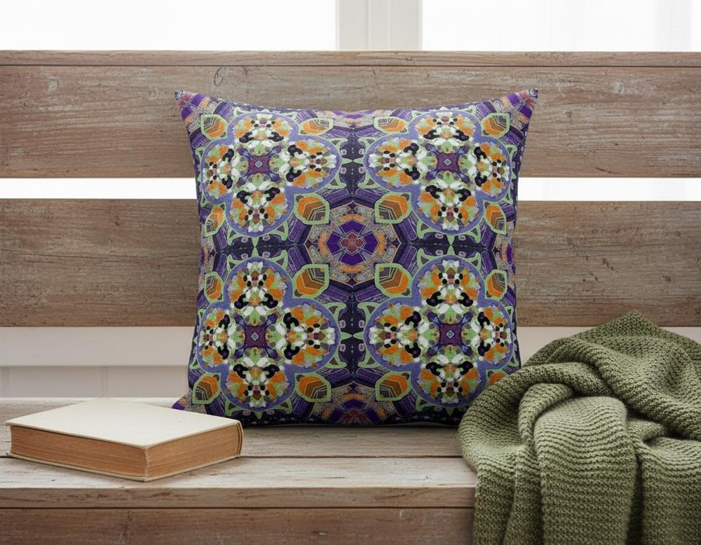 20" Purple Orange Cloverleaf Boho Suede Throw Pillow