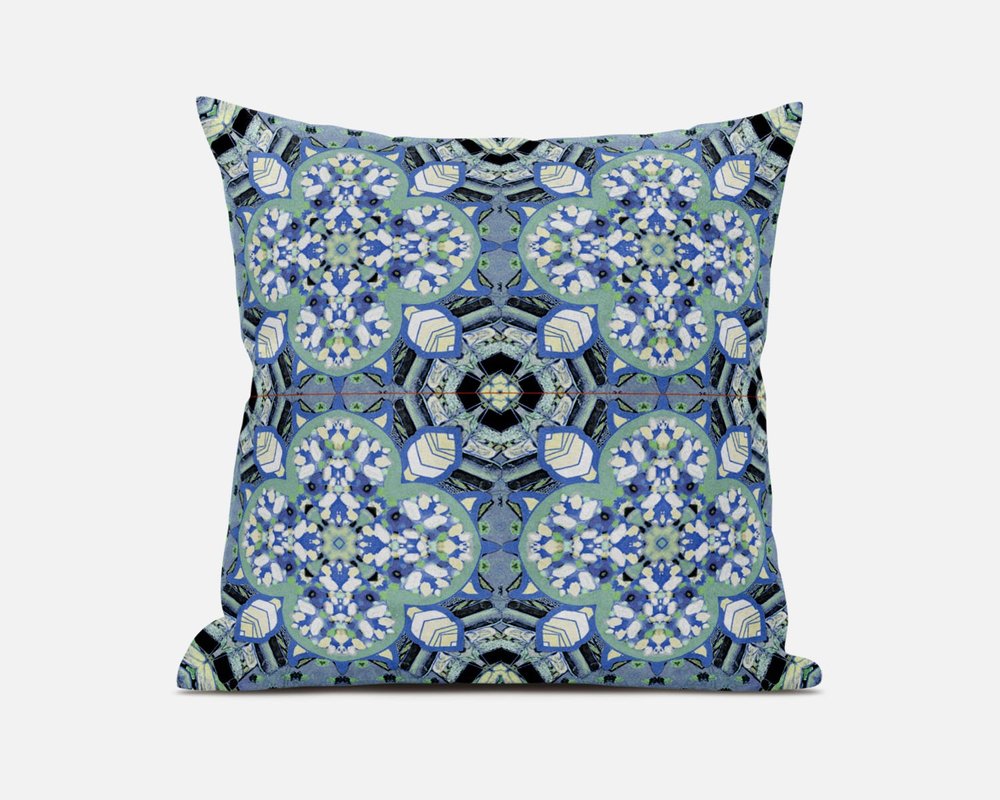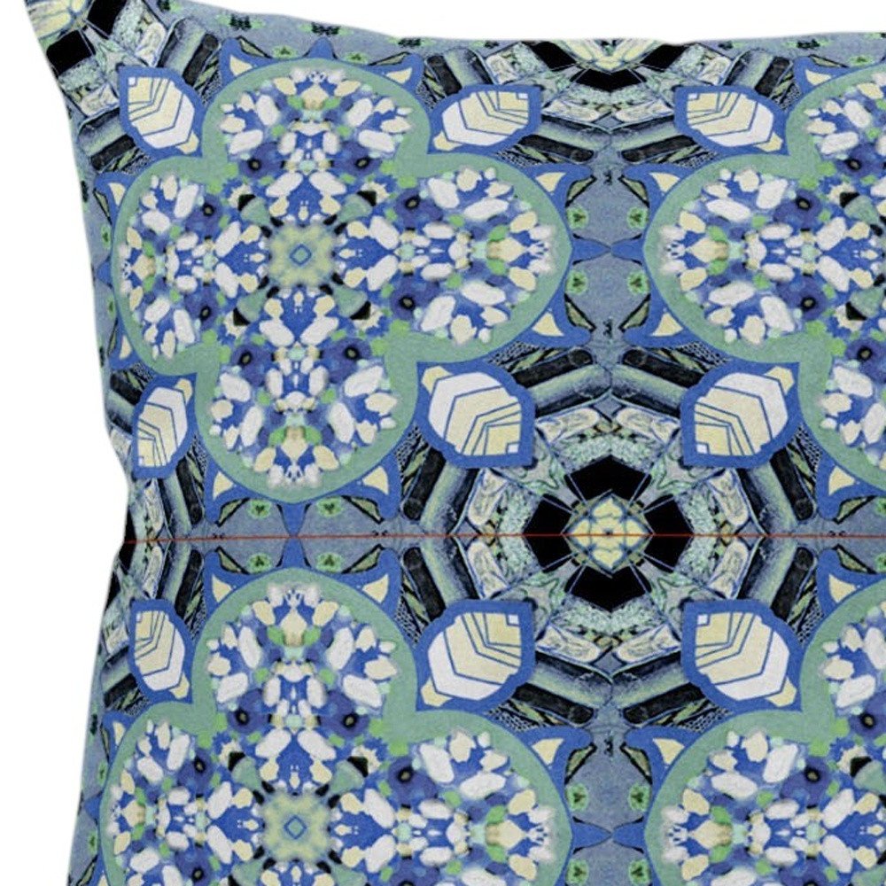 Bring a pop of bohemian blue into your contemporary home with this striking Sapphire White Cloverleaf Boho Suede Throw Pillow. Featuring a rosette cloverleaf pattern, the stunning blues of the pillow with the white leaflike shards and black edgings make for the perfect boho accent piece in a modern interior style. The blown pillow is carefully crafted with a premium suede fabric that gives it a feel of luxury while also being functional for everyday use. The softness of the cushion’s polyester filling insert combined with the smooth texture of the cover is enough to make you fall asleep the minute your head hits the throw pillow. Bring a sense of tranquility into your living space with this cozy throw pillow that can almost be compared to a piece of fine art on its own. 18” x 18” x 5”