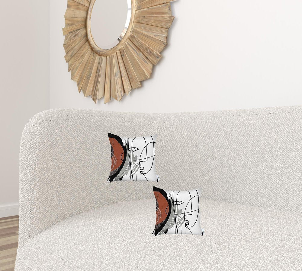 Add some boho-chic charm to your living space with this Set of 2 Red Boho Chic Printed Pillow Covers. The bold linework of this piece is used to create an abstract face mural with red accents on the side over a soft ivory base to create visual intrigue. The unique charm of this cover combined with the amiable color palette makes it ideal for an array of indoor styles. Hand-made by Turkish craftsmen, this pillow cover uses high-quality OEKO-TEX Standard 100 certified polyester fabric and has hidden zipper closures. By only spot cleaning marks and blemishes, you’ll be able to keep this cover looking seamlessly beautiful for ages. Place this set of 2 pillow covers with bold and dark colors and watch the mural come to life while bringing the whole look together. 18” x 18” each. Set of 2.