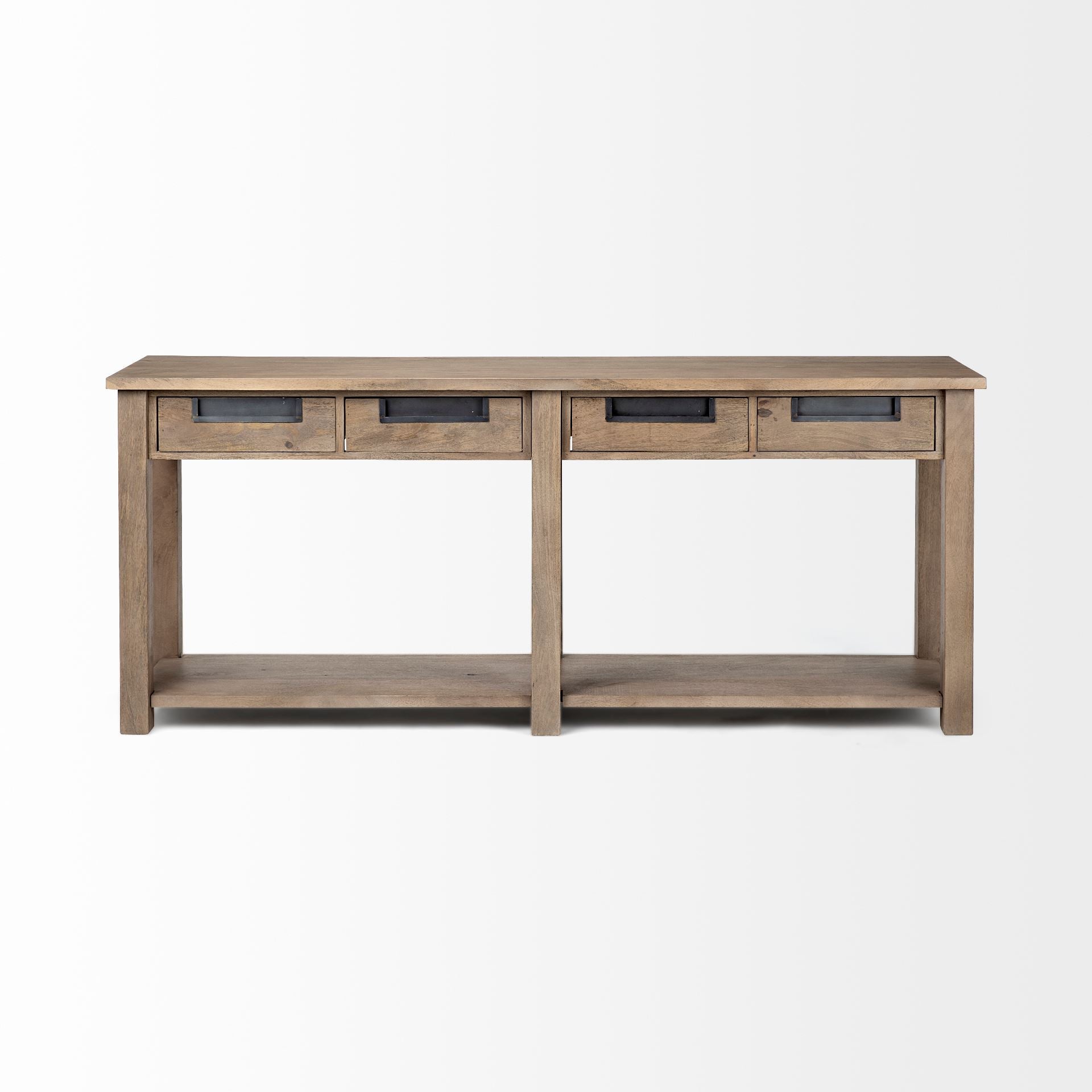 Light Brown Mango Wood Finish Console Table With 4 Drawers