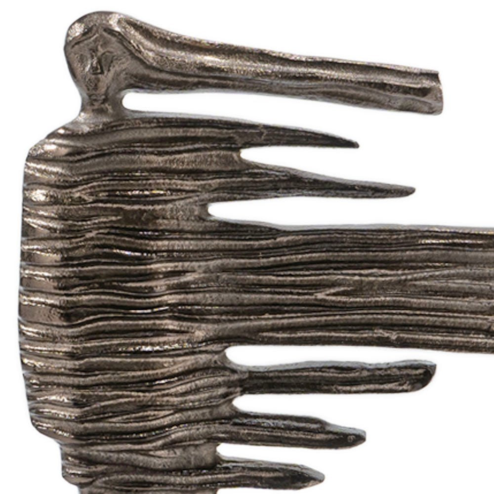 Unique and decorative, this 12-inch bronze aluminum blown away woman tabletop sculpture will leave a lasting impression. Hand finished with meticulous attention to detail, this sculpture showcases the elegance and strength of a woman in a modern and abstract style. The use of premium cast aluminum ensures durability while adding a contemporary touch to your decor. It serves as a stunning focal point, making it an ideal addition to any tabletop display. 11.5-inch h x 12-inch w x 6-inch d.