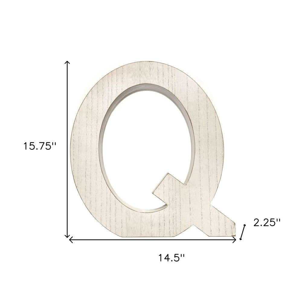 16" Distressed White Wash Wooden Initial Letter Q Sculpture