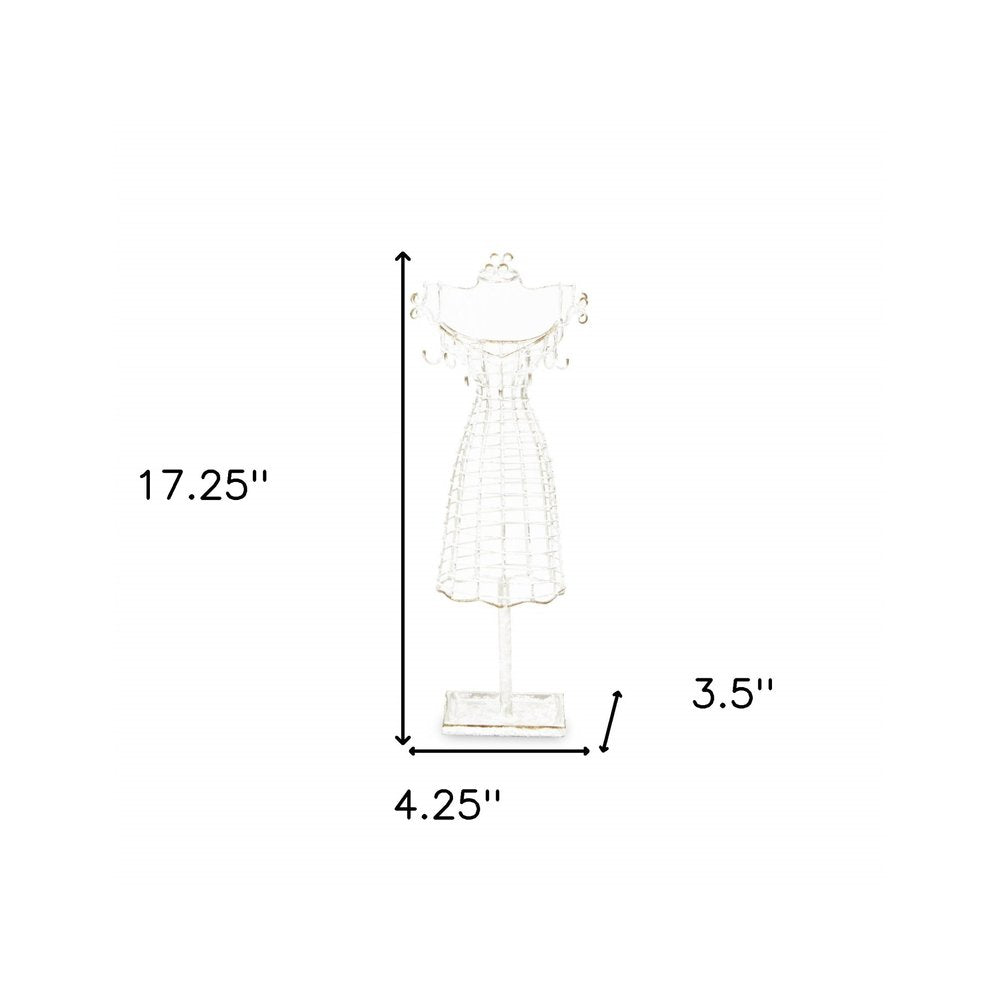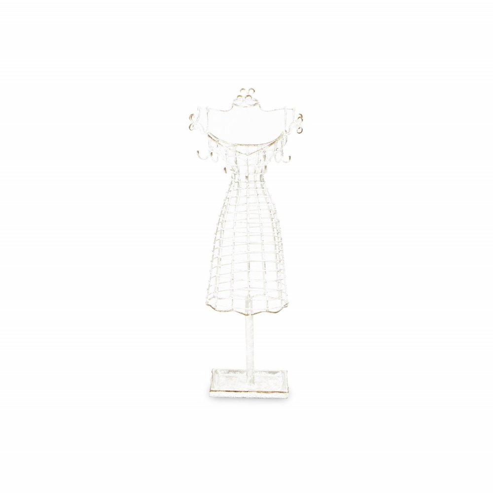 Hand-painted with intricate details, this 17-inch silver metal dress form sculpture and jewelry holder adds a touch of elegance to any space. Handmade with care, this contemporary sculpture showcases a stylish design that is perfect for those who appreciate unique decor pieces. Crafted from high-grade metal, this sculpture features a silver finish that complements a modern aesthetic. Celebrating the beauty of people, this sculpture is a stunning addition to any home. 17.25-inch H x 4.25-inch W x 3.5-inch D