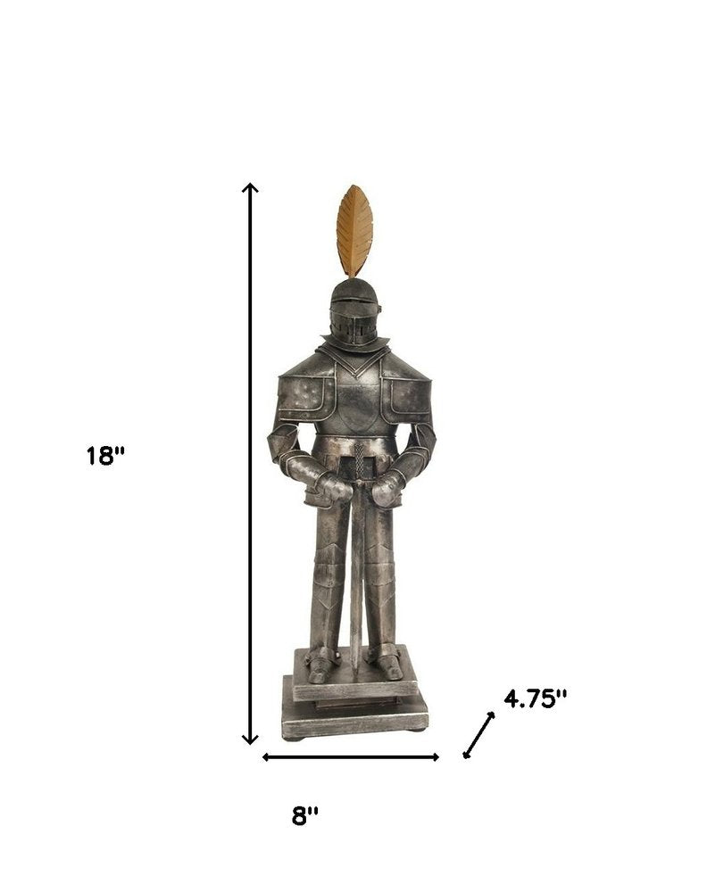 18" Gray Metal Hand Painted Figurine Tabletop Sculpture