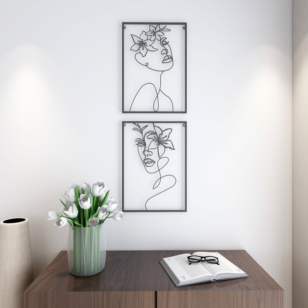 20" X 14" Black Metal Abstract Female Face Hanging Dimensional Sculpture
