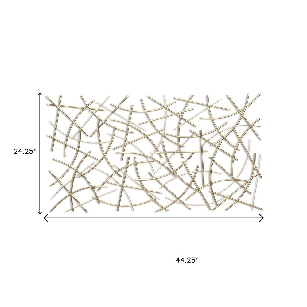 24" X 44" Gold Abstract Lines Metal Hanging Dimensional Sculpture