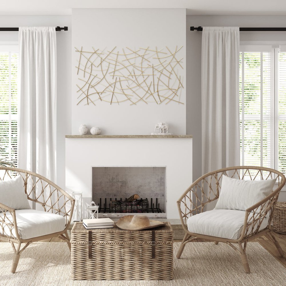 Handmade with care, this piece brings some authenticity to your space. The rectangular shape offers a sleek and contemporary look that seamlessly integrates into various decor styles. Crafted from durable metal, this wall decor not only enhances your walls but also adds a touch of texture to your environment. This hanging dimensional sculpture creates a striking visual impact, drawing attention and sparking conversation. Its modern style is perfect for those looking to elevate their home or office setting. With its horizontal orientation, it fits well above furniture or as a statement piece in any room, making it a versatile addition to your decor collection. 24.25-inch h x 44.25-inch w x 1.50-inch d.