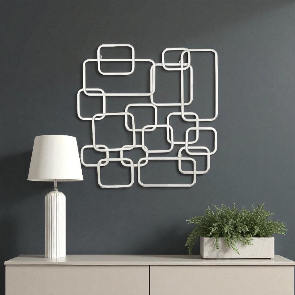 Easily create a focal point in your room with this generously sized modern decor. Handmade with care, this piece brings some authenticity to your space. Its vertical orientation allows for a striking display, enhancing the visual height of your walls. Crafted from high-quality metal, this hanging dimensional sculpture adds a touch of sophistication to any setting. The contemporary style seamlessly integrates with various design aesthetics, making it a versatile addition to your home. Each element is thoughtfully designed to capture attention and evoke conversation, transforming ordinary walls into stunning showcases of art. 26.75-inch h x 26.00-inch w x 1.50-inch d.