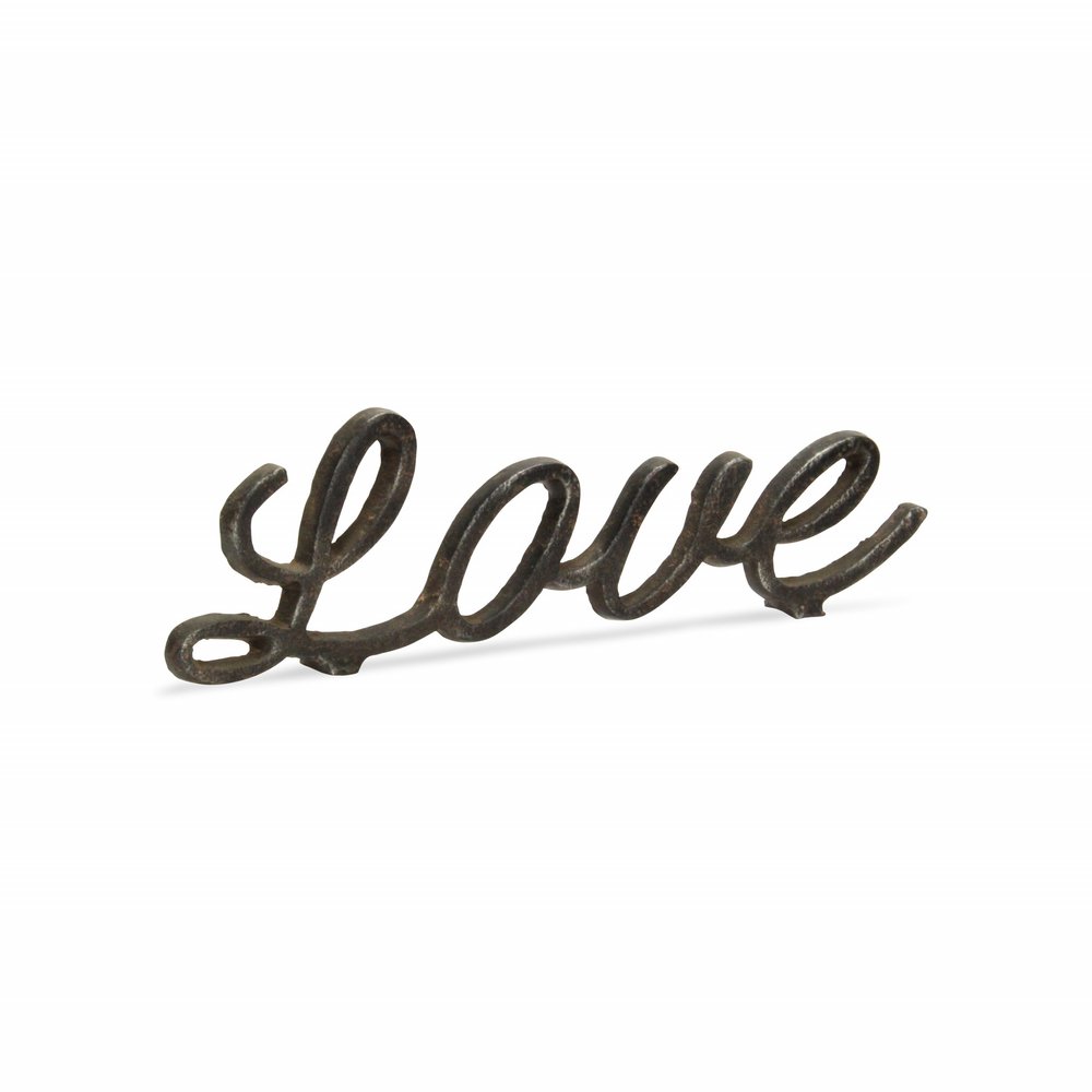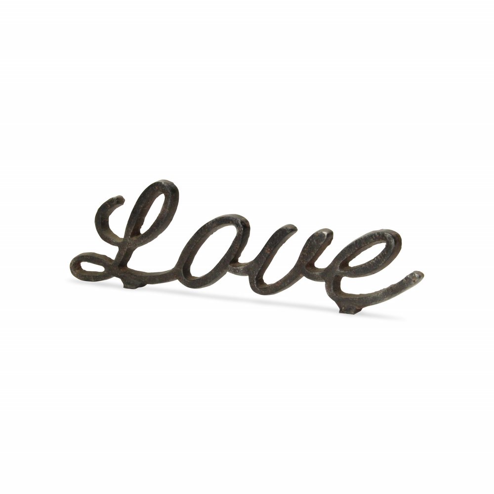 Unique and decorative, this 3-inch black cast iron love hand painted tabletop sculpture will leave a lasting impression. This black hued piece represents high quality, expertly made from high grade cast iron. It's a perfect addition for those who love an up-to-the-minute look and feel. 3-inch h x 10-inch w x 0.5-inch d.