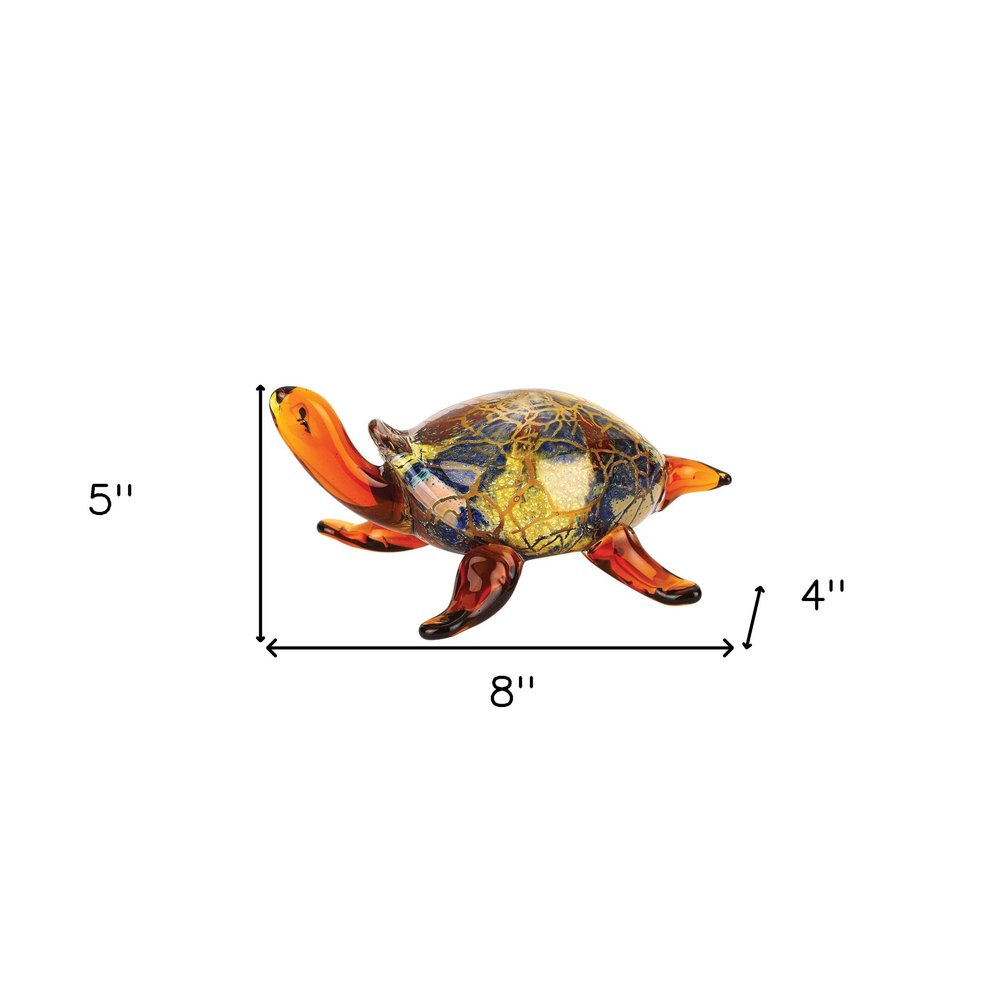 Add an air of fashion to your room and rejuvenate the space with this 4-inch clear brown and green murano glass turtle figurine tabletop sculpture. This clear brown and green hued piece represents high quality, expertly made from high grade murano glass. Update your room with this great tropical sea life decor. Great to use on its own or mix with other decorations for the perfect look. 4-inch H x 5-inch W x 8-inch D
