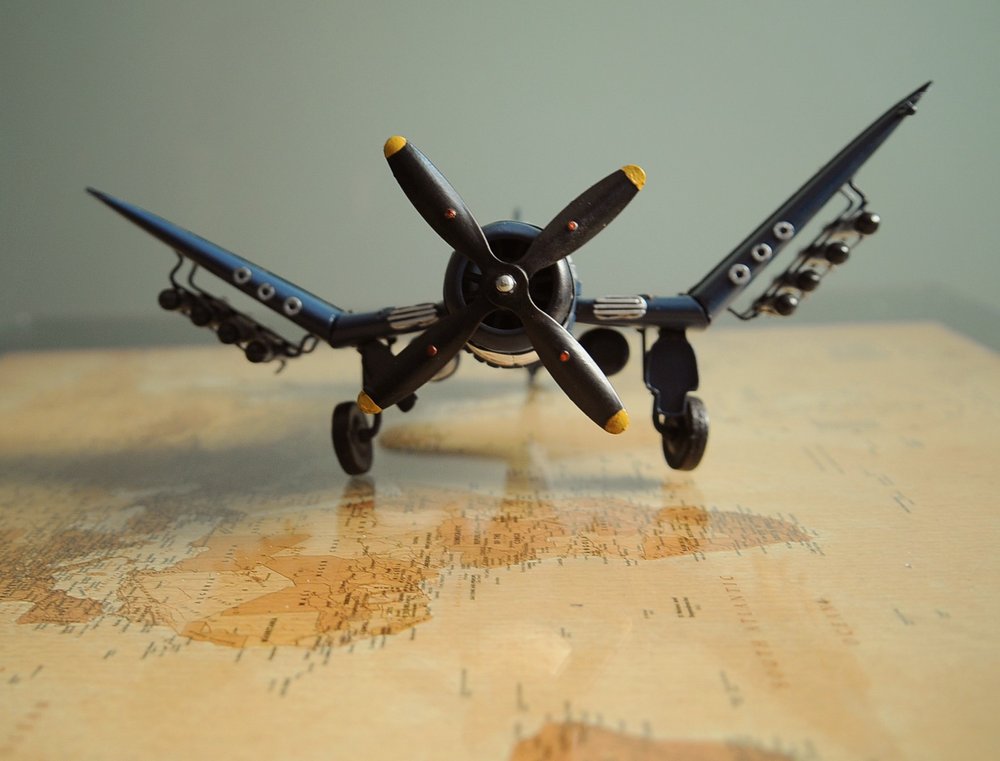 6" Blue Metal Hand Painted Model Airplane Tabletop Sculpture