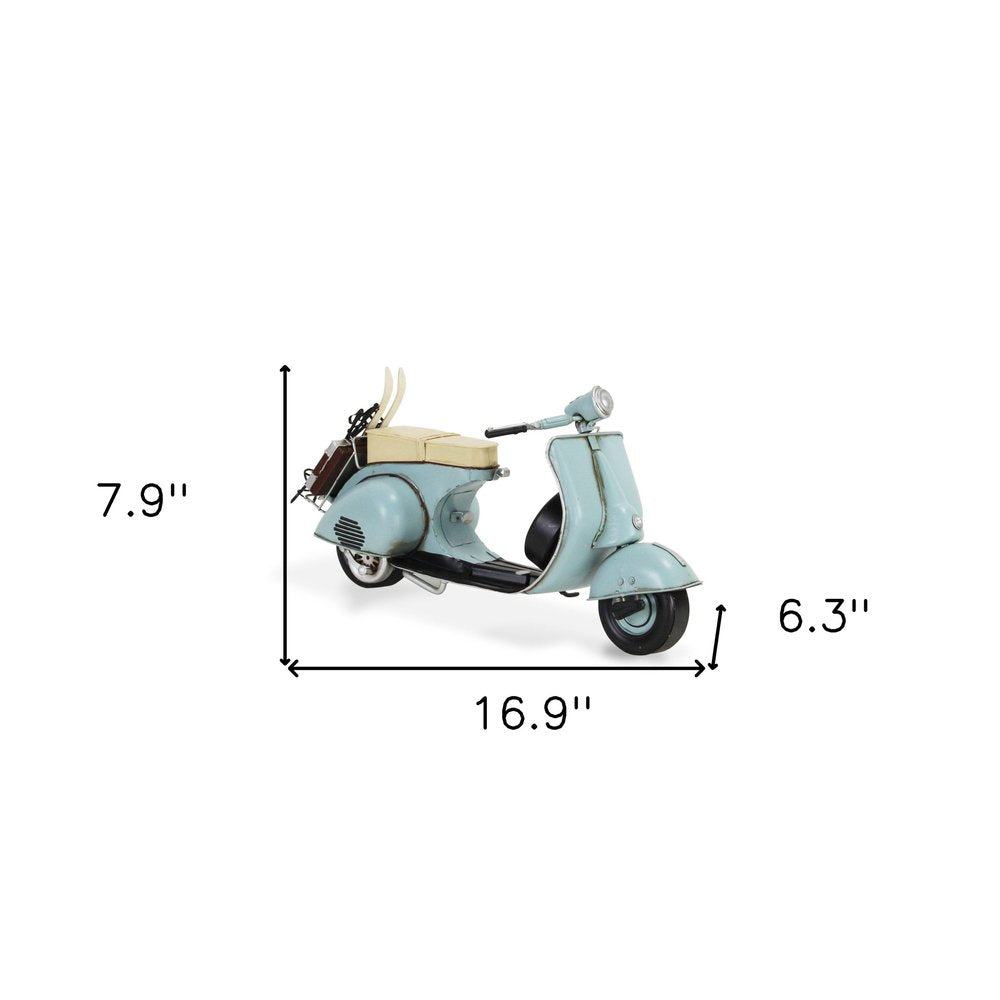 Add an air of fashion to your room and rejuvenate the space with this 8-inch blue and black metal hand painted model motorcycle tabletop sculpture. This blue and black hued piece represents high quality, expertly made from high grade metal. It's a perfect addition for those who love an up-to-the-minute look and feel. 7.9-inch h x 16.9-inch w x 6.3-inch d.