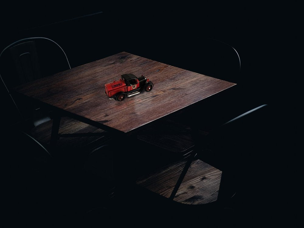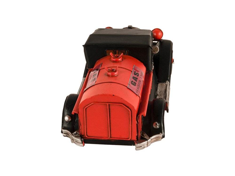 An authentic replica of one of the most iconic trucks of all time, the c1930 Ford AA Fuel Tanker Sculpture is a handmade metal replica of this truck outfitted as a fuel tanker. Handcrafted from metal, painted in a black and red combination, and meticulously detailed, this model features rolling wheels, headlights, turn signals, a steering wheel, fenders, and a fuel tank in the back. It is a great conversation starter and an excellent piece for any vintage car collection. 4.5'' x 11'' x 5"