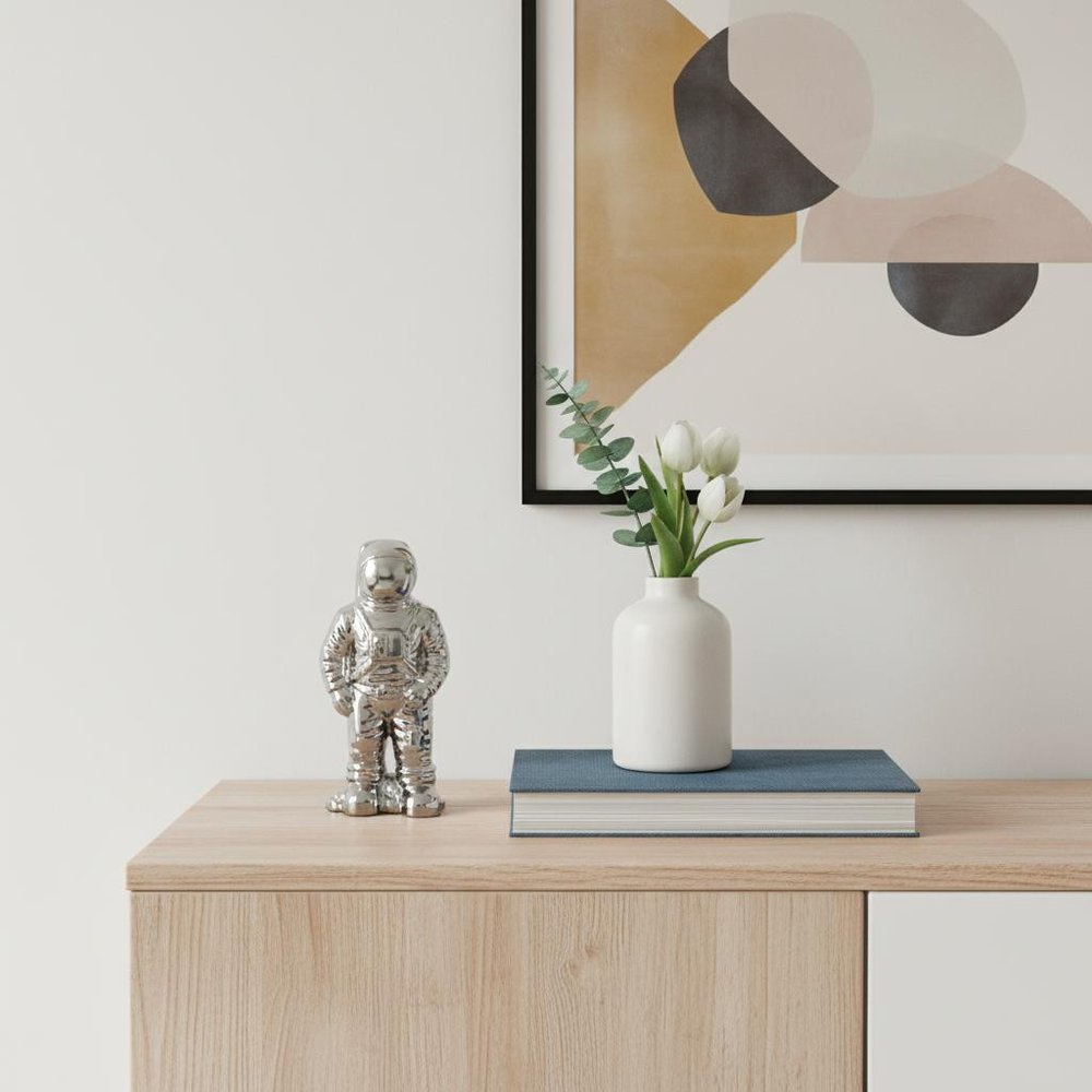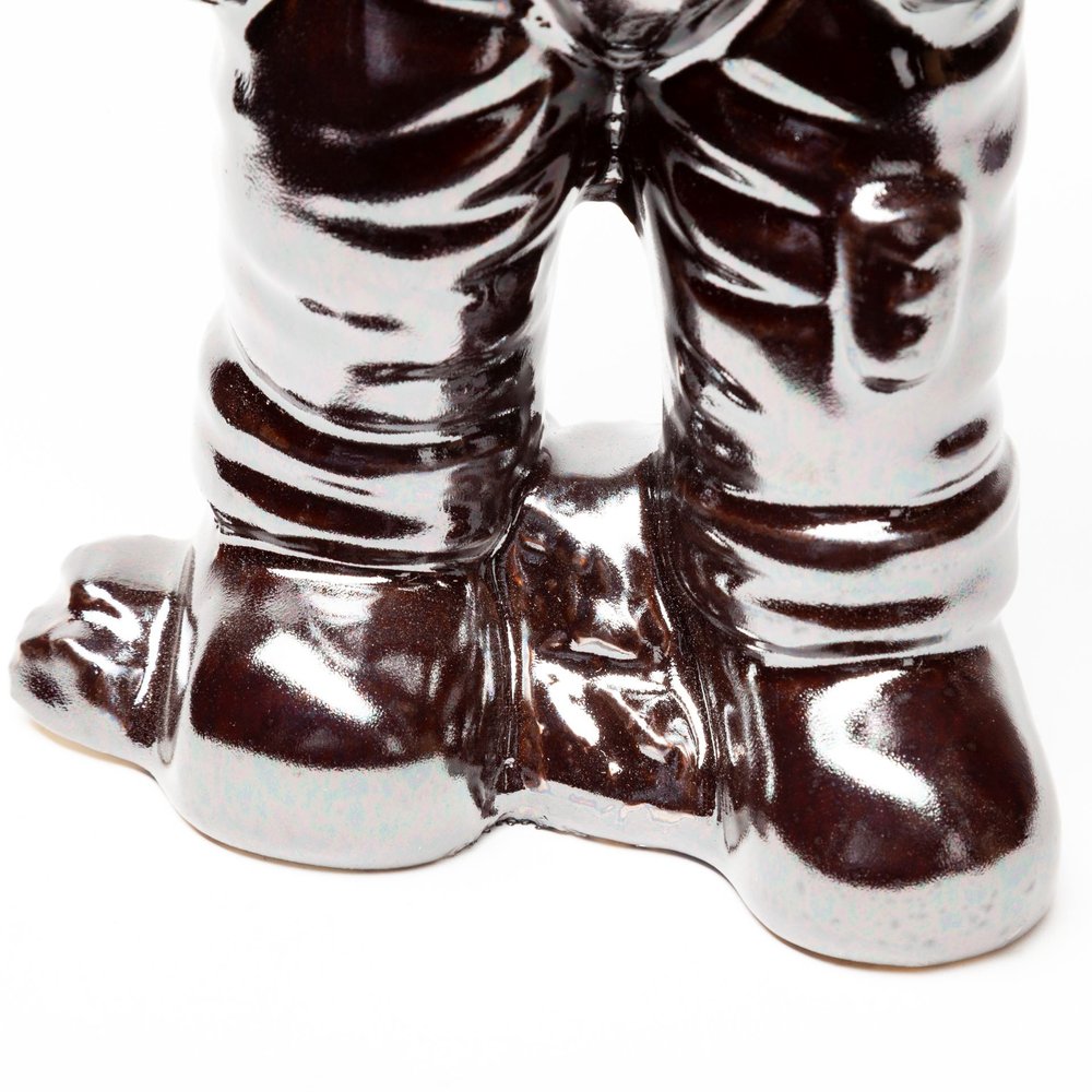 This Over the Moon Silverplated Astronaut Sculpture is the perfect way to add a touch of whimsical and historical design to your home. This decor piece is made from silverplated ceramic and has a shiny dark The electroplated finish has a deep and shiny look to it and has a brown tinge to it. The astronaut statue has details on it that add depth and dimension to the whole piece. You can use this in your living room or office as decor, or it can go in your bookshelf as a nice piece to accent your books and accessories. 10" H x 4" W x 4" D