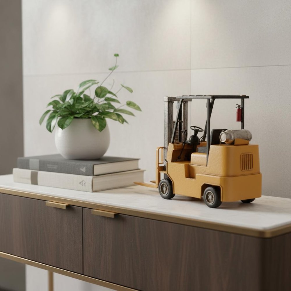 Eyecatching and super realistic, the Propane Forklift Sculpture is a unique handmade replica of the most influential vehicles that expanded the idea of the forklift. It was developed by companies like Toyota and Caterpillar after WWII. It features many details a propane tank, gearsticks, forks, lights, and a fire extinguisher. It is 100% made from metal with an authentic yellow paint finish and it is a sought-after model for collectors and enthusiasts. 10'' x 16.5'' x 5.5"