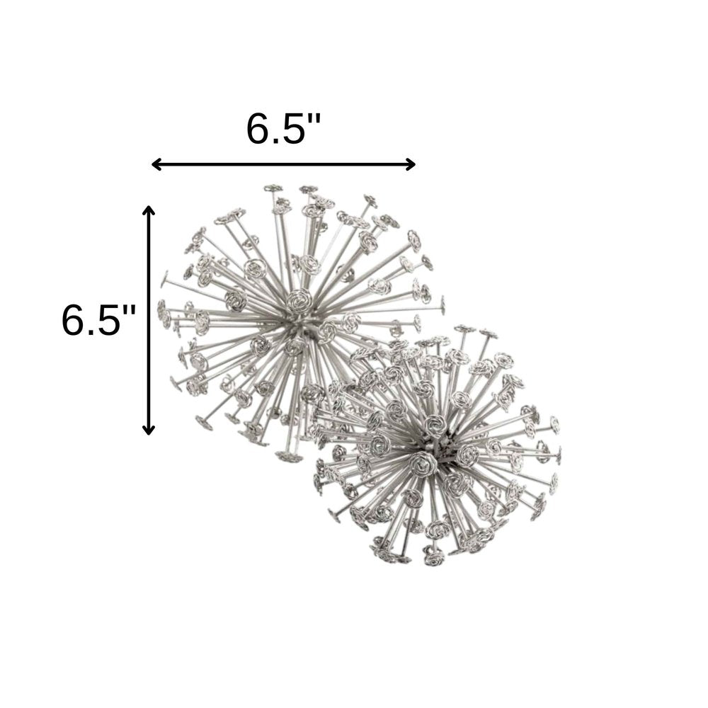The set of two gold cast iron decorative spiky sphere tabletop sculptures is the perfect decorative accessory for your home. This charming decorative accent is expertly made of high grade cast iron in a gold coloration and features spiky rods with tiny flowers at the end. Great to use on its own or mix with other decorations for the perfect look. 6.5-inch h x 6.5-inch w x 6.5-inch d.