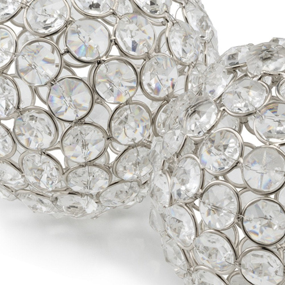 Set of Two Silver And Clear Faux Crystal And Metal Orb Decorative Tabletop Sculptures