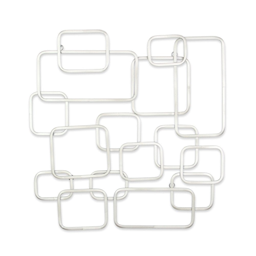 27" X 26" Silver Geometric Metal Abstract Hanging Dimensional Sculpture