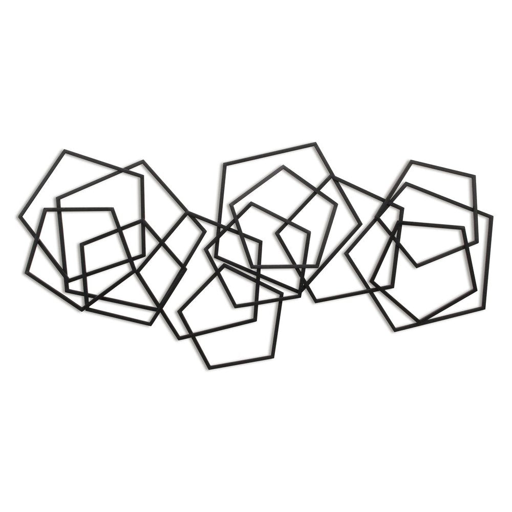 24" X 48" Black Geometric Metal Abstract Hanging Dimensional Sculpture