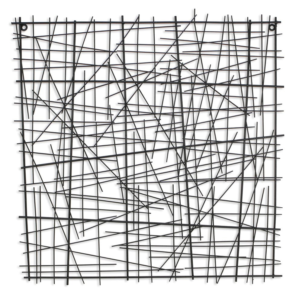 32" X 32" Black Handcrafted Abstract Lines Metal Hanging Dimensional Sculpture