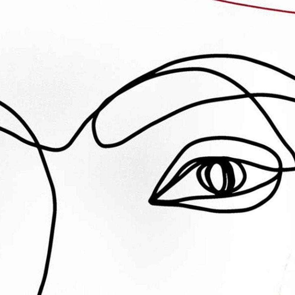 Bring some funk and flare to your living space with this 18-inch ivory black and red abstract face fabric throw pillow. The hypnotizing gaze created with precise linework and hints of red for the hair demonstrates a modern art boho-chic style. This soft polyester filled pillow not only is decorative but made to be comfy and cozy all day long. For anyone that loves to decorate or accent their space with color and texture. A great decorative accessory to add color and dimension to your favorite chair, accent your sofa, or to use as part of your bed ensemble. 18-inch h x 18-inch w x 1-inch d.