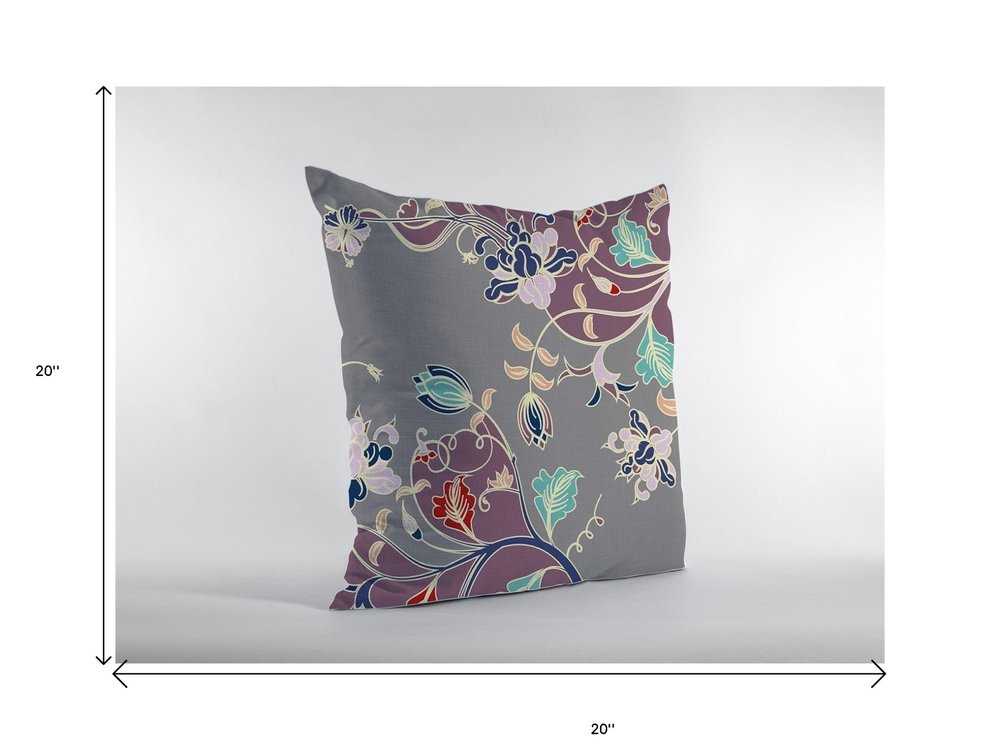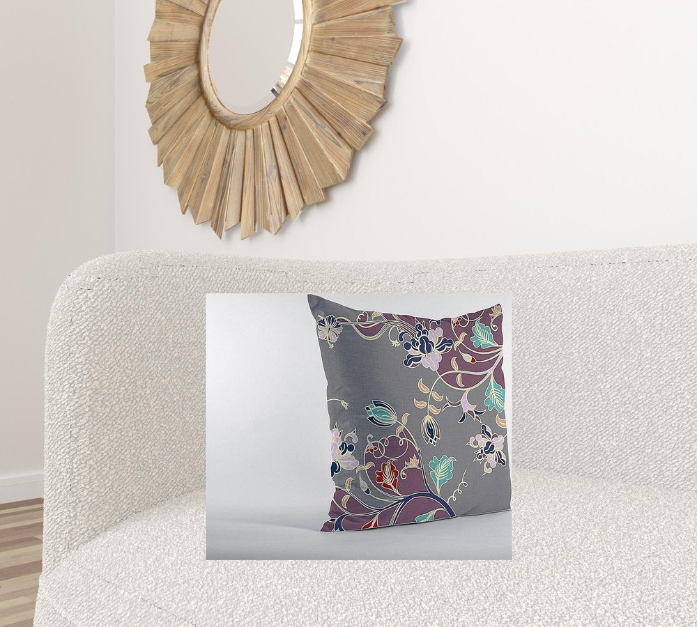 18" Purple Gray Garden Decorative Suede Throw Pillow