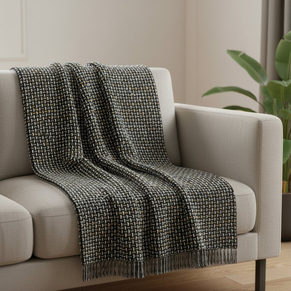 Black and Blue Woven Cotton Geometric Throw Blanket