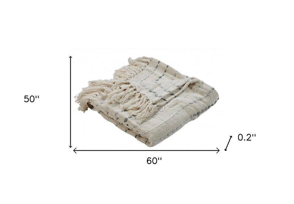 50" X 60" Cream Kantha Cotton Striped Throw Blanket with Embroidery