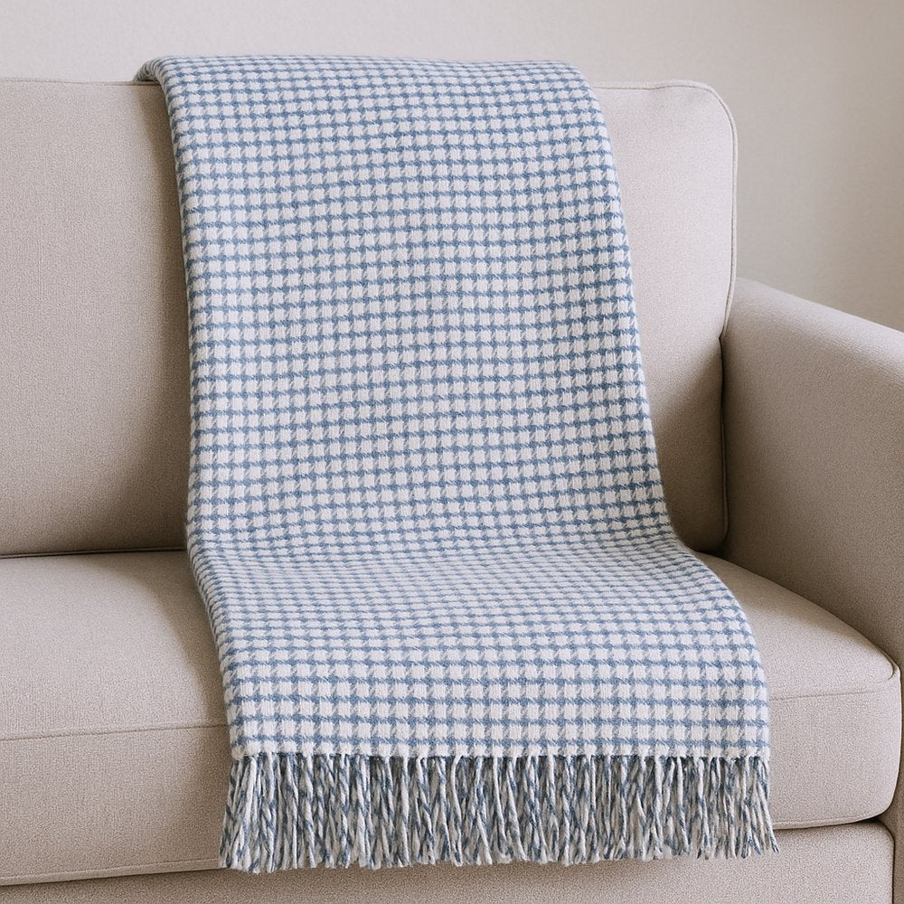 This 50-inch x 67-inch cream and denim blue cotton blend woven plaid throw blanket with fringe is the perfect accent you've been searching for. Features a woven plaid design that offers sumptuous softness and texture that you'll cherish for years to come. Made from cotton blend this blanket will make a great addition to any room it's added to. Layering your furnishings with a decorative throw has the ability to awaken a tired living room or elevate the design of your bedroom simply by providing elements of color and texture that weren't there before. This cozy throw blanket makes the perfect add-on to movie nights and lazy afternoons. 67-inch h x 50-inch w x 1-inch d.