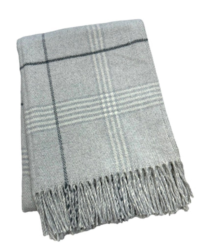 This 50-inch x 67-inch light gray and white polyester and cotton woven plaid throw blanket with fringe is an essential for any cozy abode. Features a woven plaid design that offers sumptuous softness and texture that you'll cherish for years to come. Made from polyester and cotton this blanket will make a great addition to any room it's added to. Layering your furnishings with a decorative throw has the ability to awaken a tired living room or elevate the design of your bedroom simply by providing elements of color and texture that weren't there before. This cozy throw blanket is sure to become your go-to couch companion. 67-inch h x 50-inch w x 1-inch d.