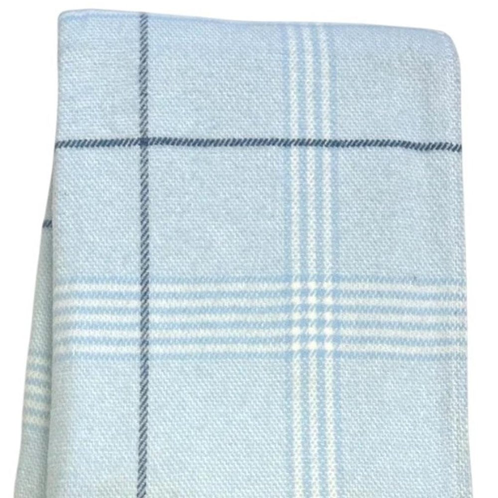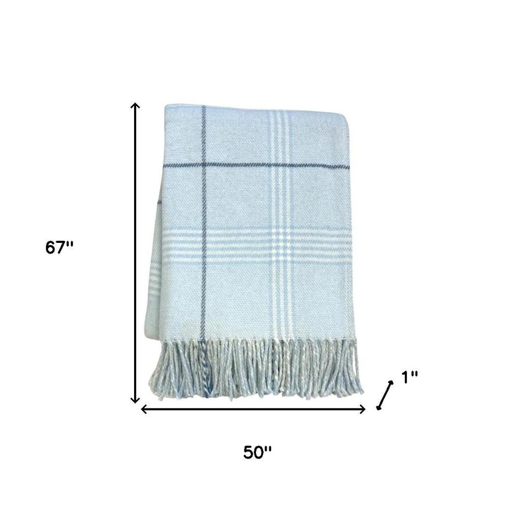 50" X 67" Sky Blue And White Plaid Cotton Blend Woven Throw Blanket with Fringe