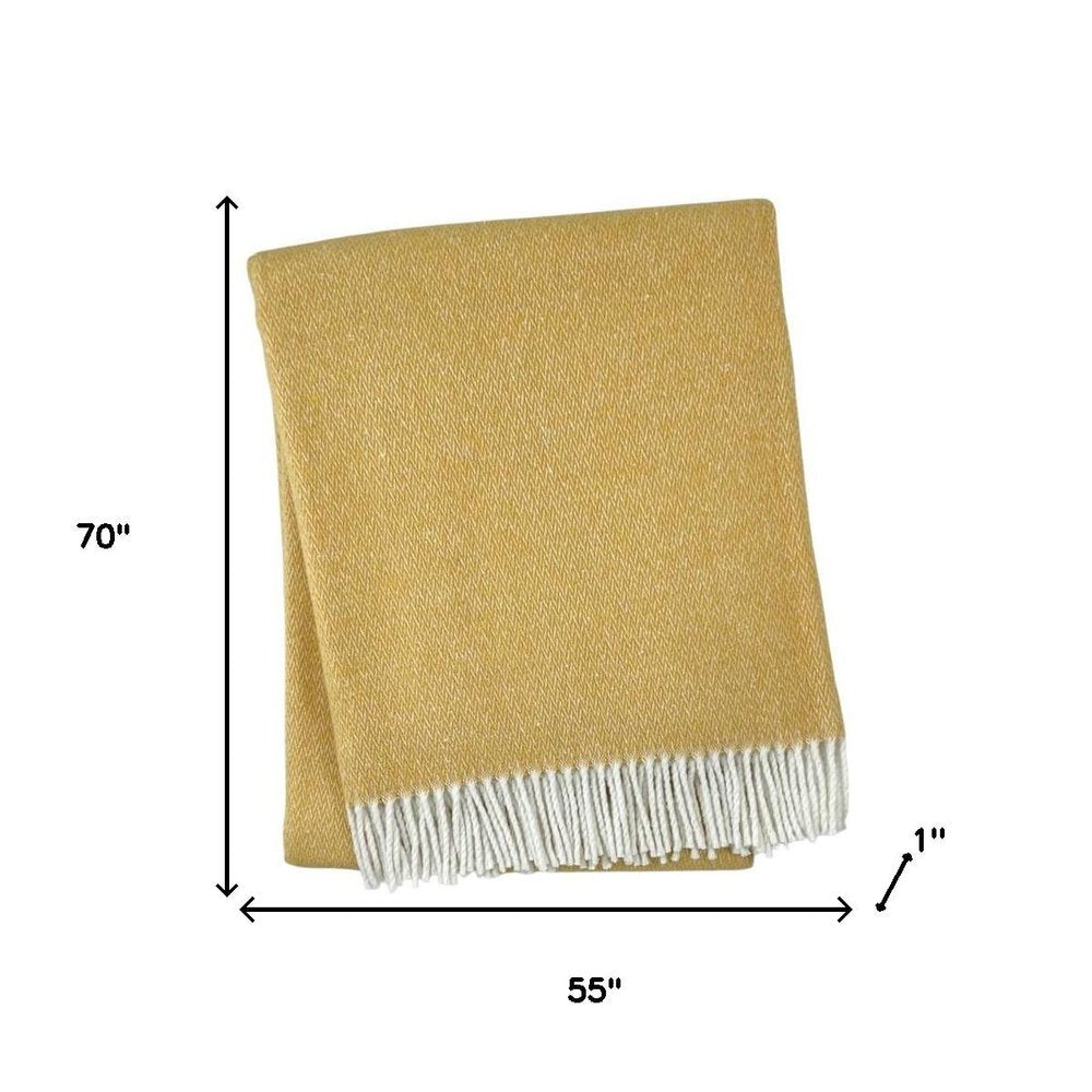 55" X 70" Gold And White Cotton Blend Woven Herringbone Plush Throw Blanket with Fringe