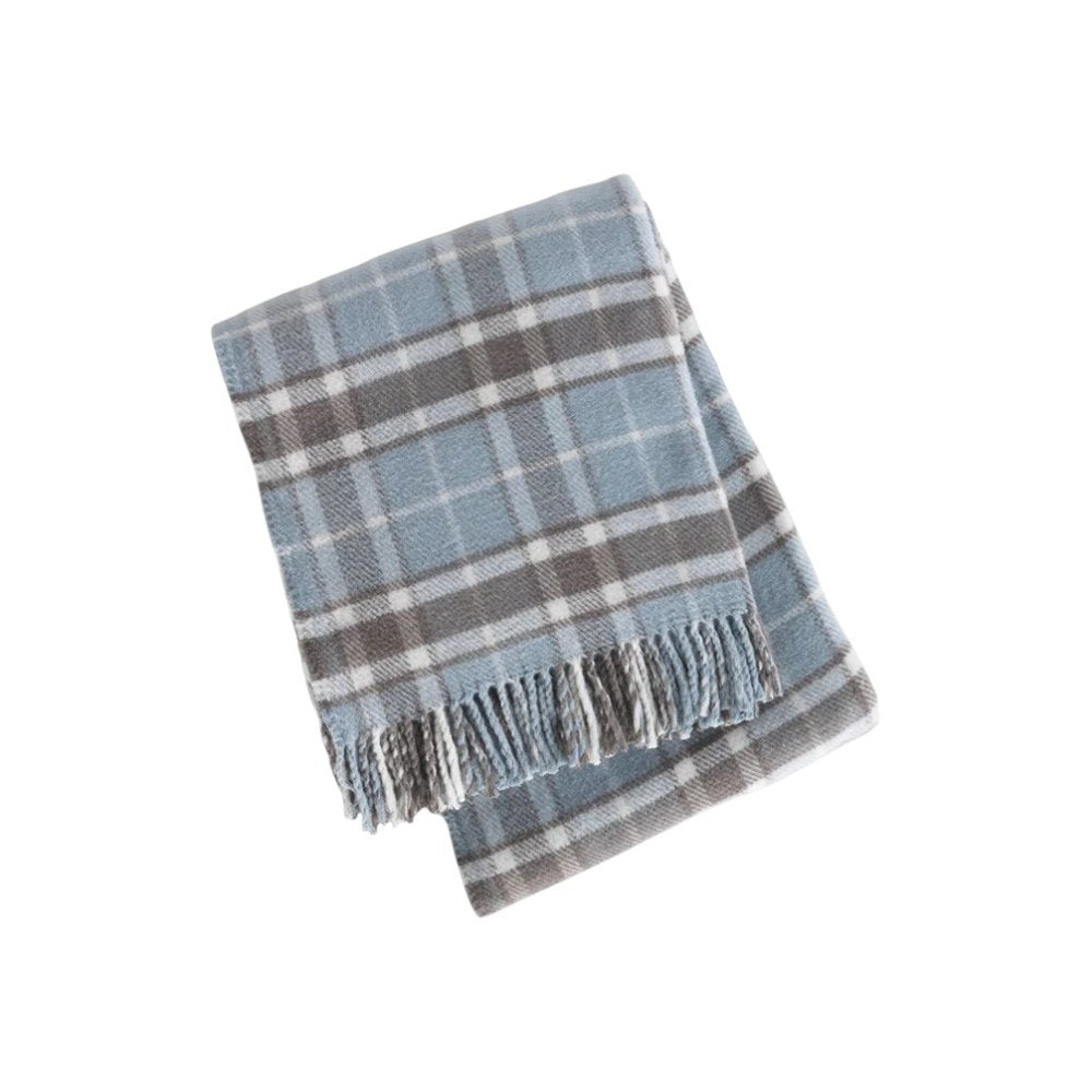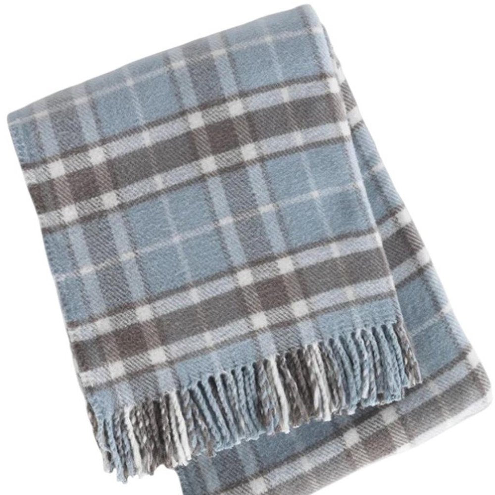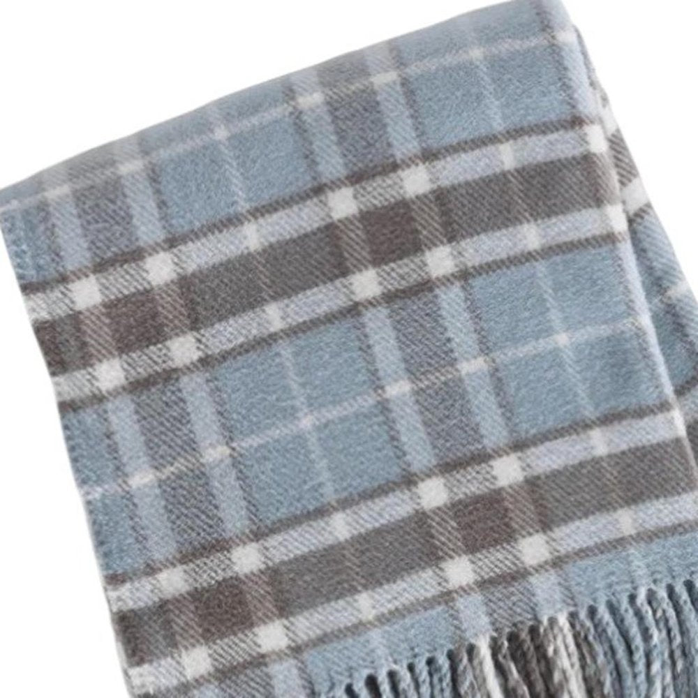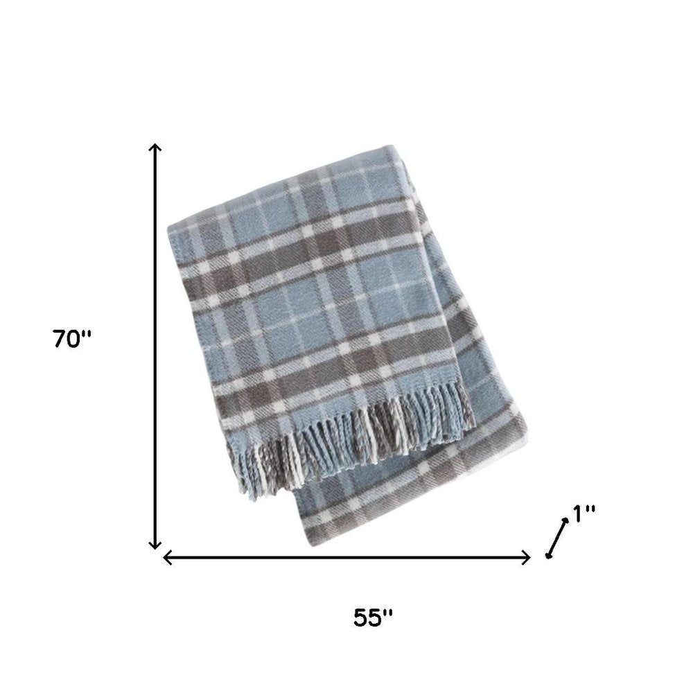 55" X 70" Sky Blue And Brown Cotton Blend Woven Plaid Plush Throw Blanket with Fringe